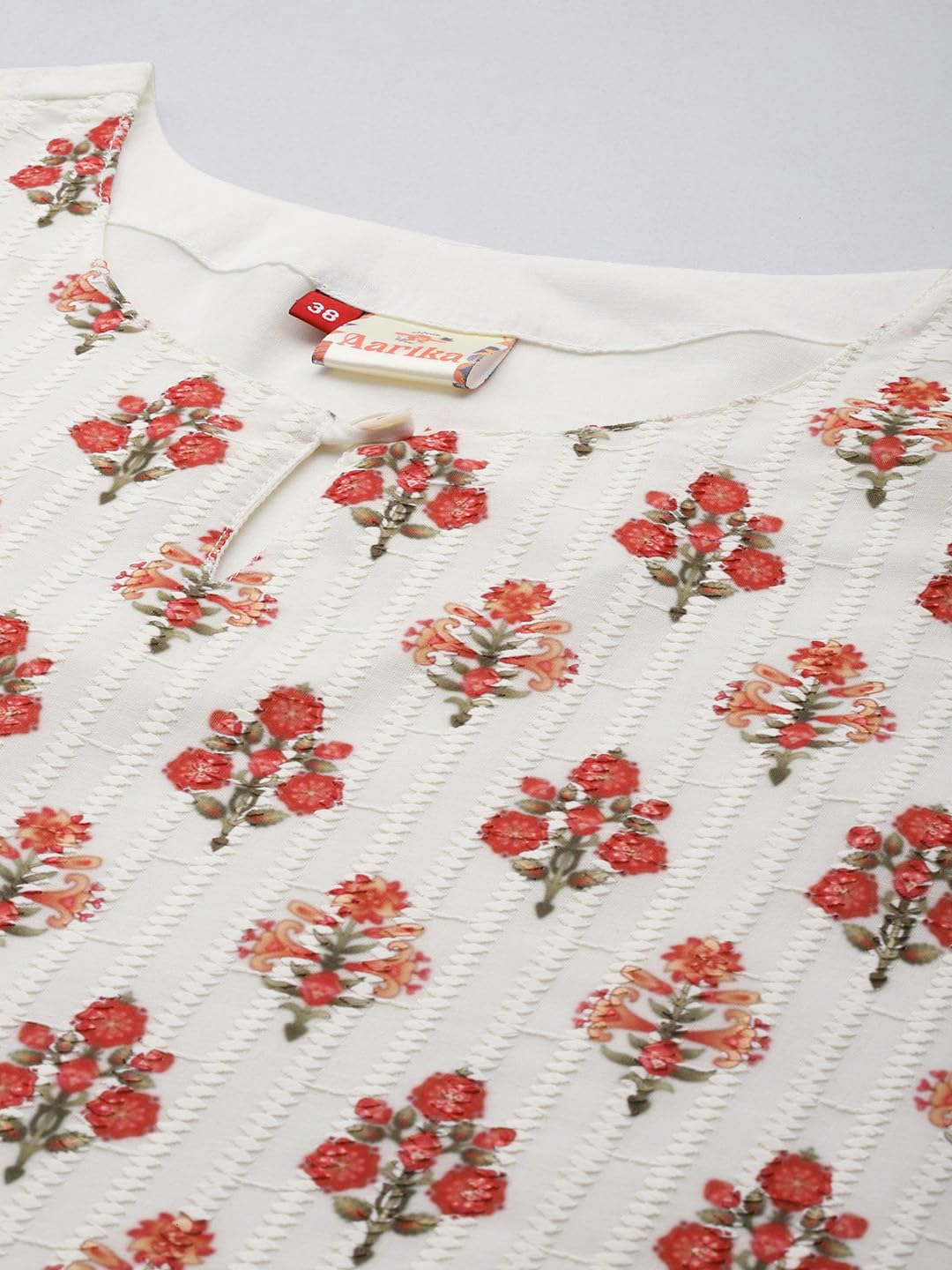 Aarika Womens Cream-Orange Color Cotton Kurti