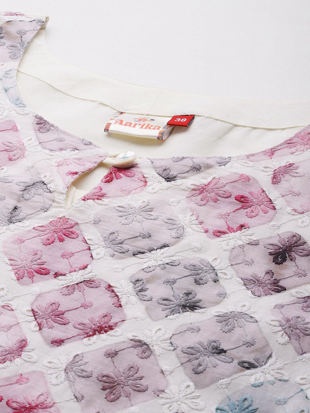Aarika Womens Cream-Pink Color Cotton Kurti