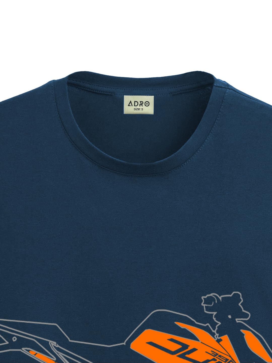 ADRO Men's Biker Design Printed 100% Cotton T-Shirt - Regular Fit, Printed T-Shirts for Men (RN24-KTM-SB_Teal)