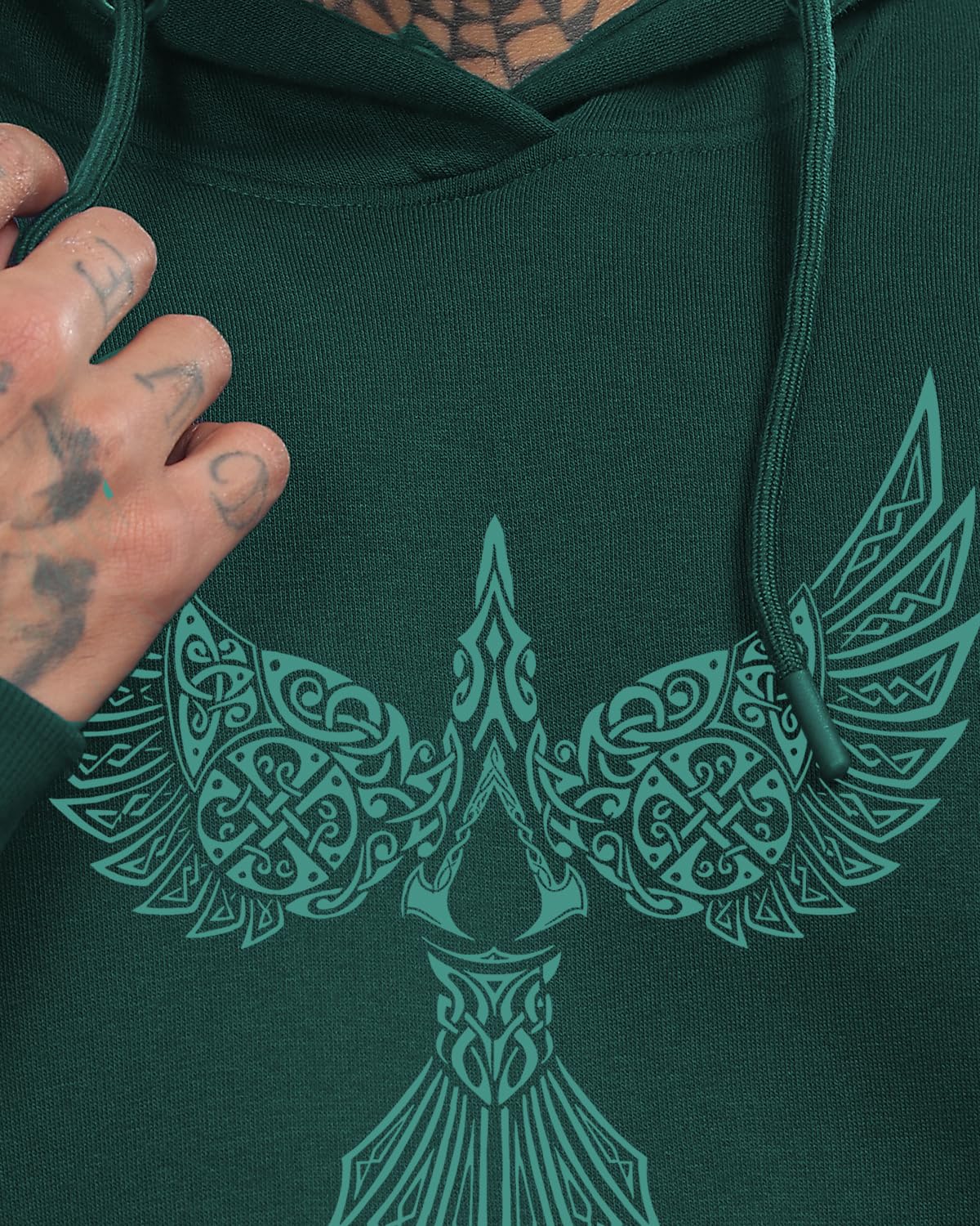 ADRO Men's Cotton Neck Hooded Sweatshirt (H24-BIRD-GRN-S_Green)