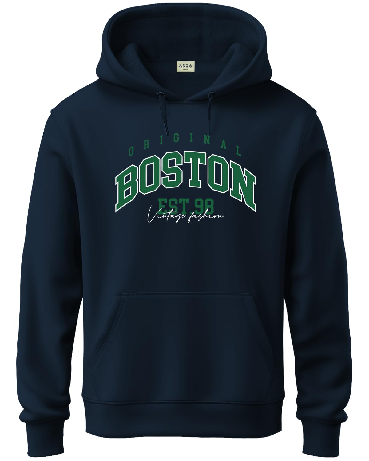 ADRO Men's Cotton Neck Hooded Sweatshirt (H24-BOST-NB_Navy Blue