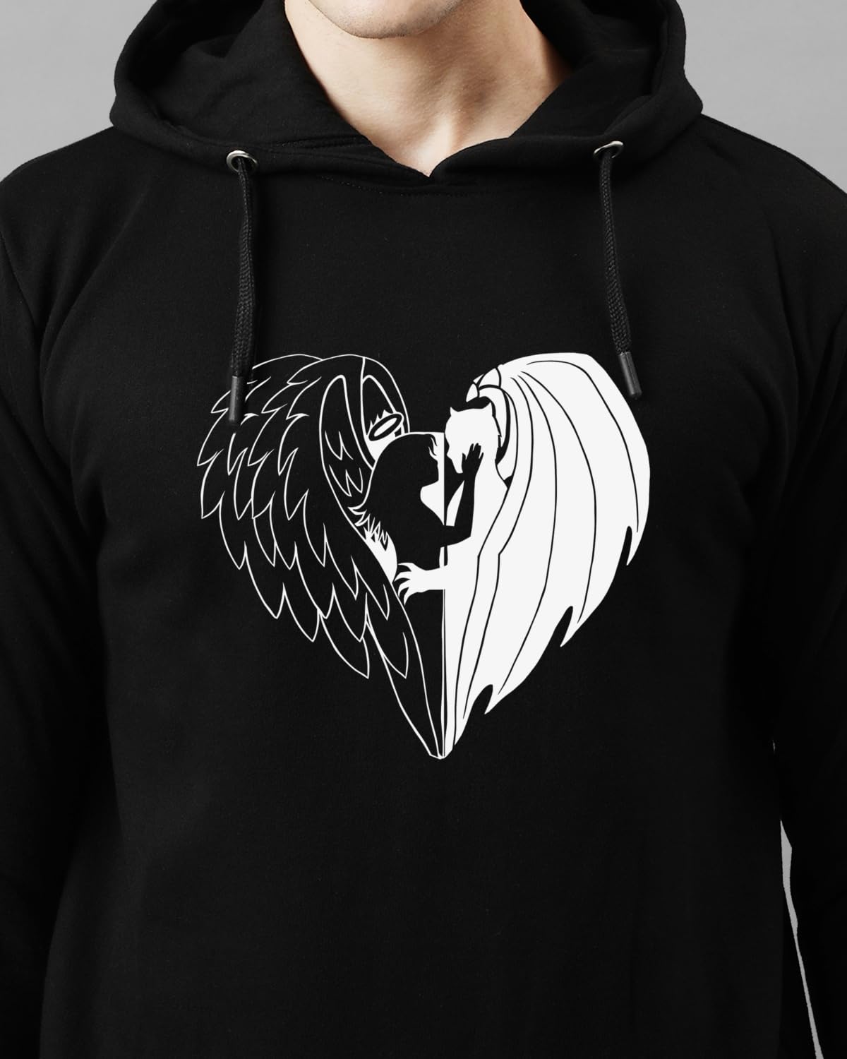 ADRO Men's Cotton Neck Hooded Sweatshirt (H24-DEVI-BL_Black