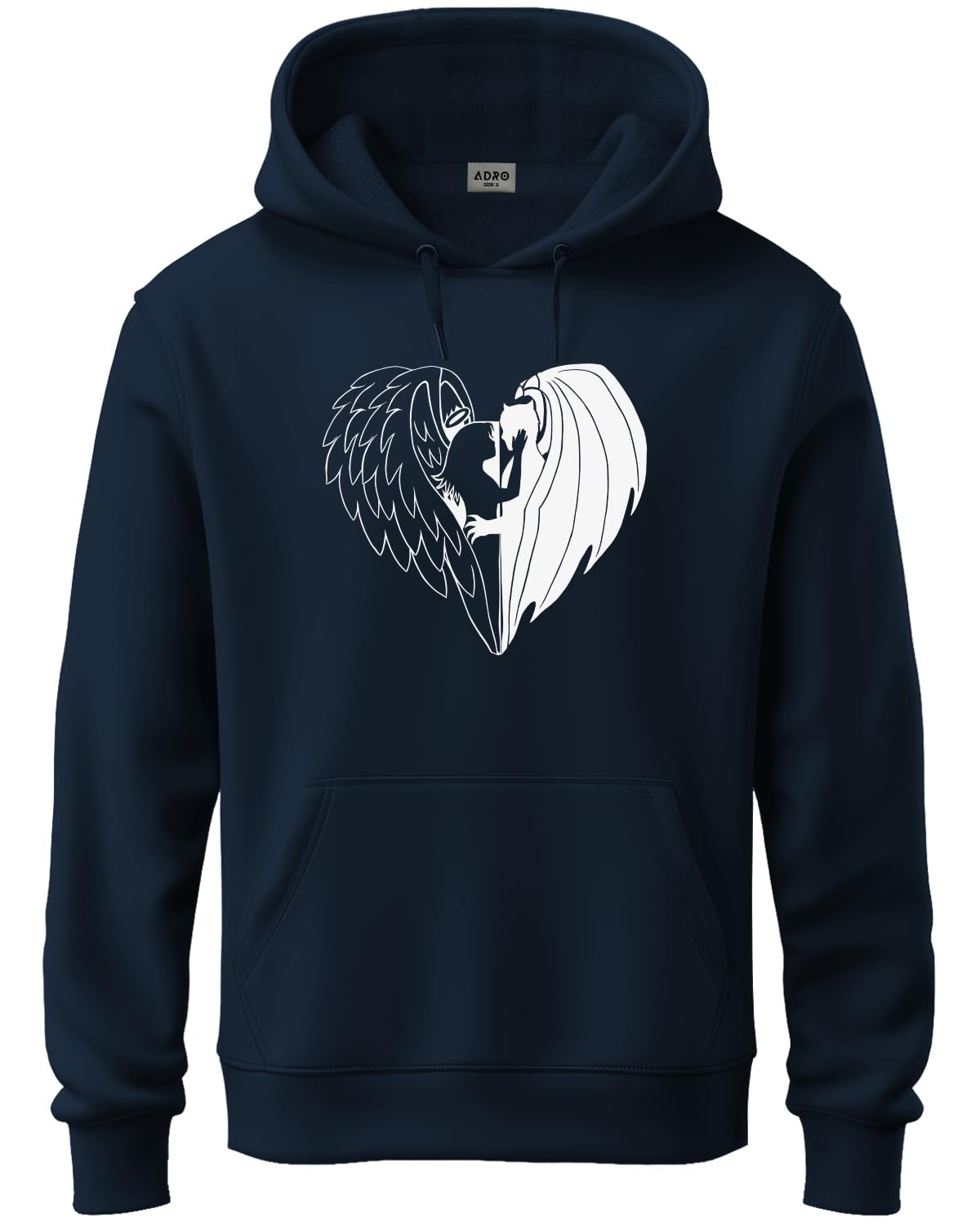 ADRO Men's Cotton Neck Hooded Sweatshirt (H24-DEVI-NB-L_Navy Blue)