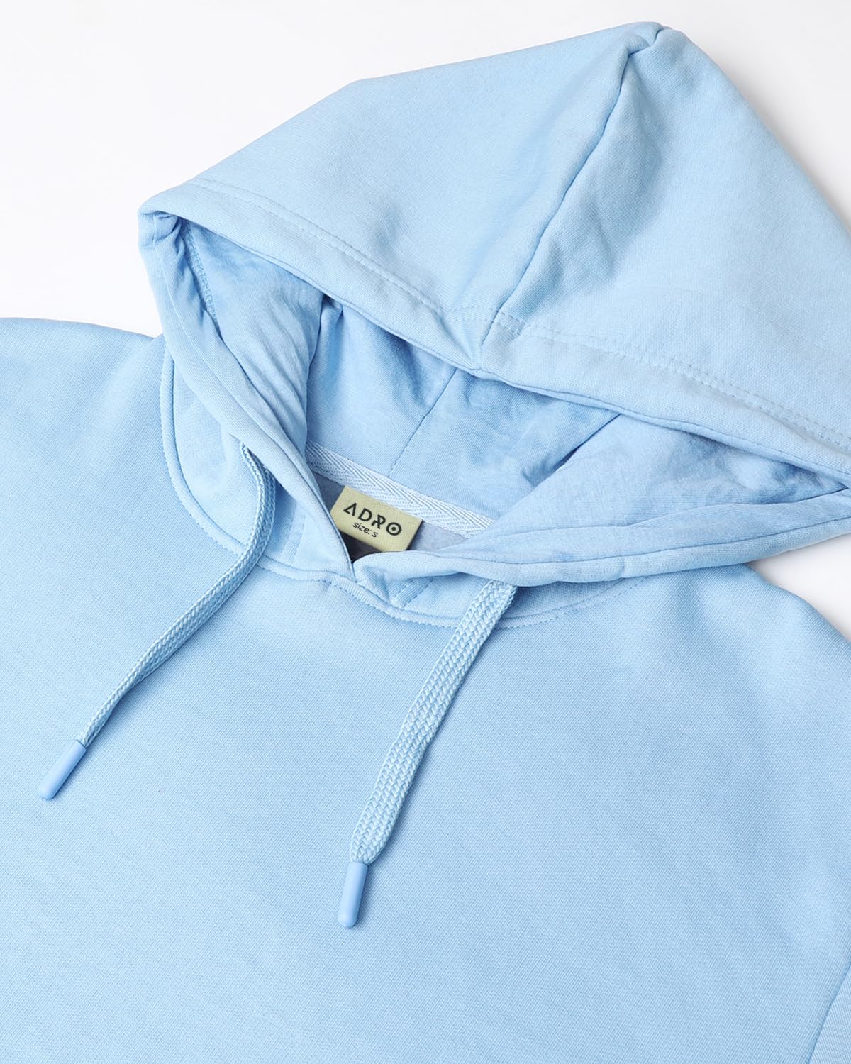 ADRO Men's Cotton Neck Hooded Sweatshirt (H24-M-PLN-SK_Sky Blue
