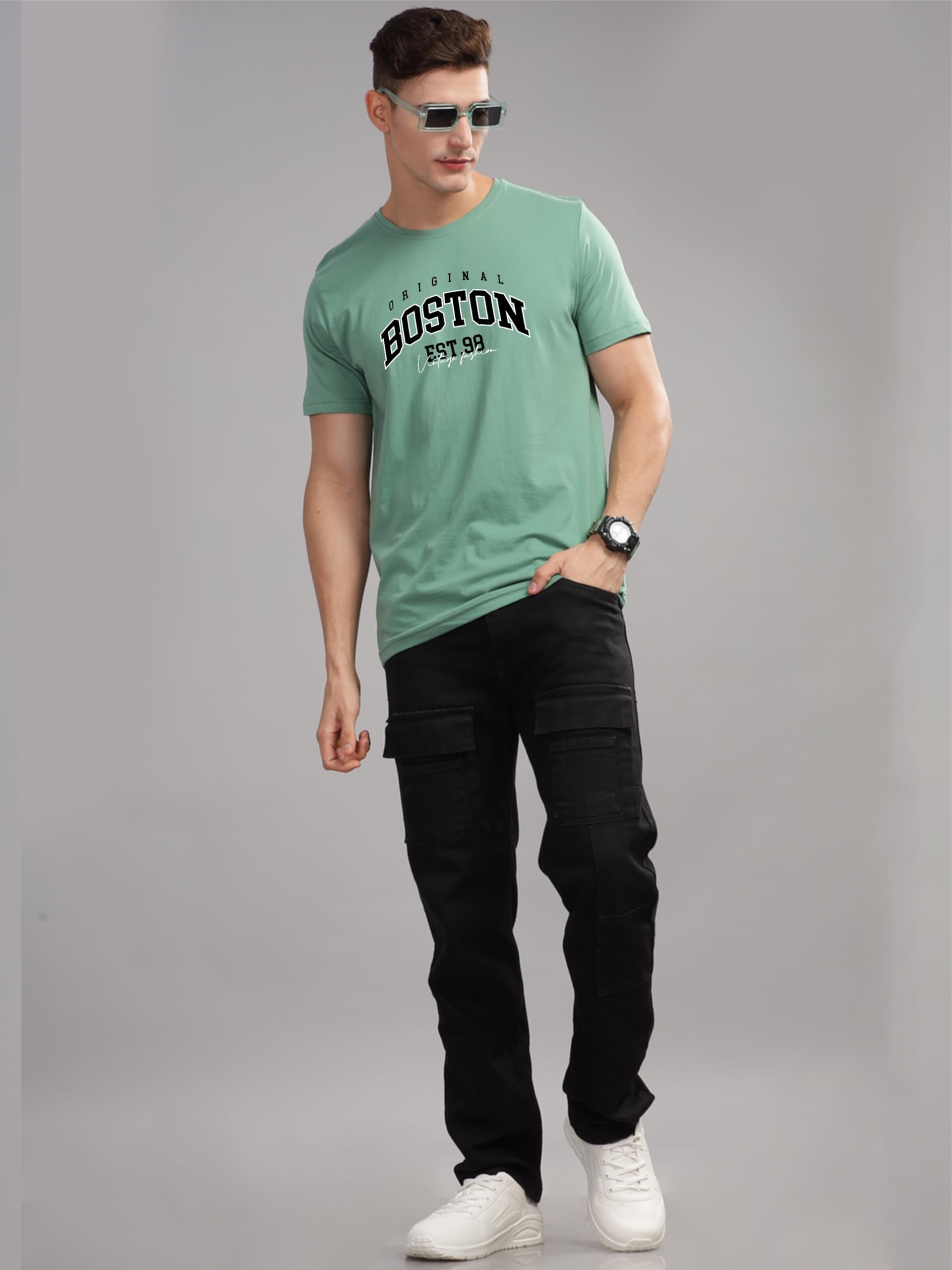 ADRO Mens Printed T Shirt - Premium Cotton Graphic Printed Tshirt - Pista T-Shirt - RN24-BOST-PT