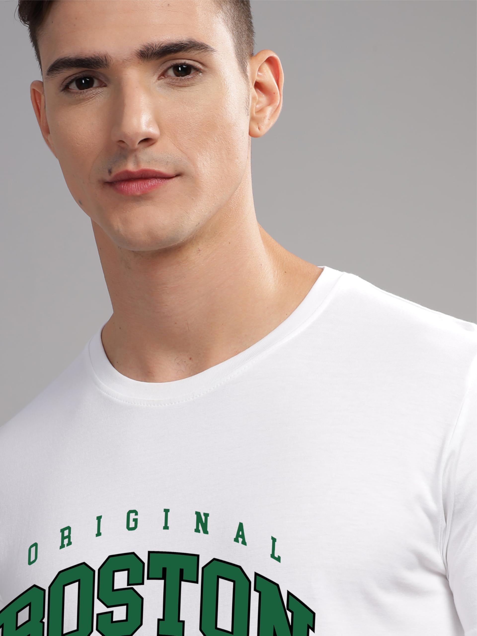 ADRO Mens Printed T Shirt - Premium Cotton Graphic Printed Tshirt - White T-Shirt - RN24-BOST-WH-XL