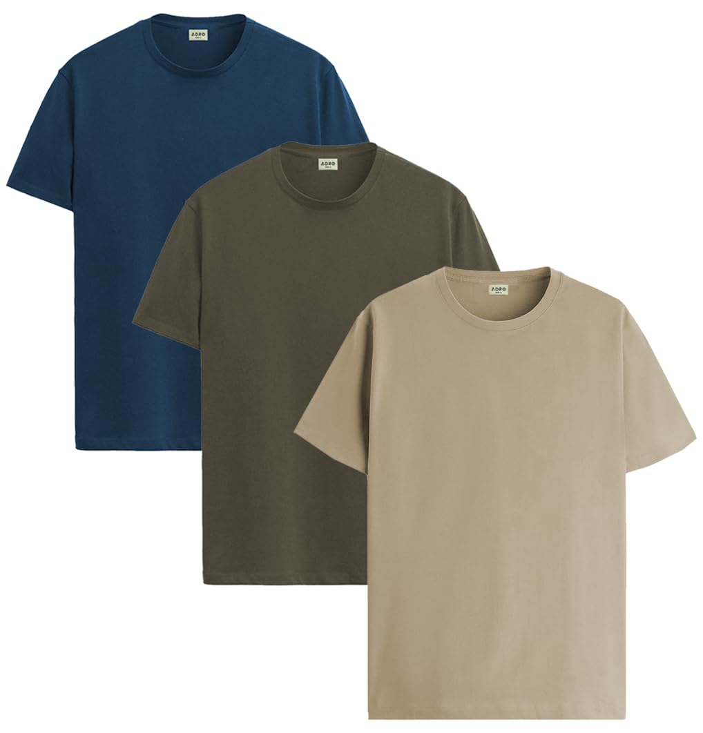 ADRO Men's Solid Regular Fit T-Shirt (RCM3-PLN-SB-OL-BE_Teal,Olive,Beige