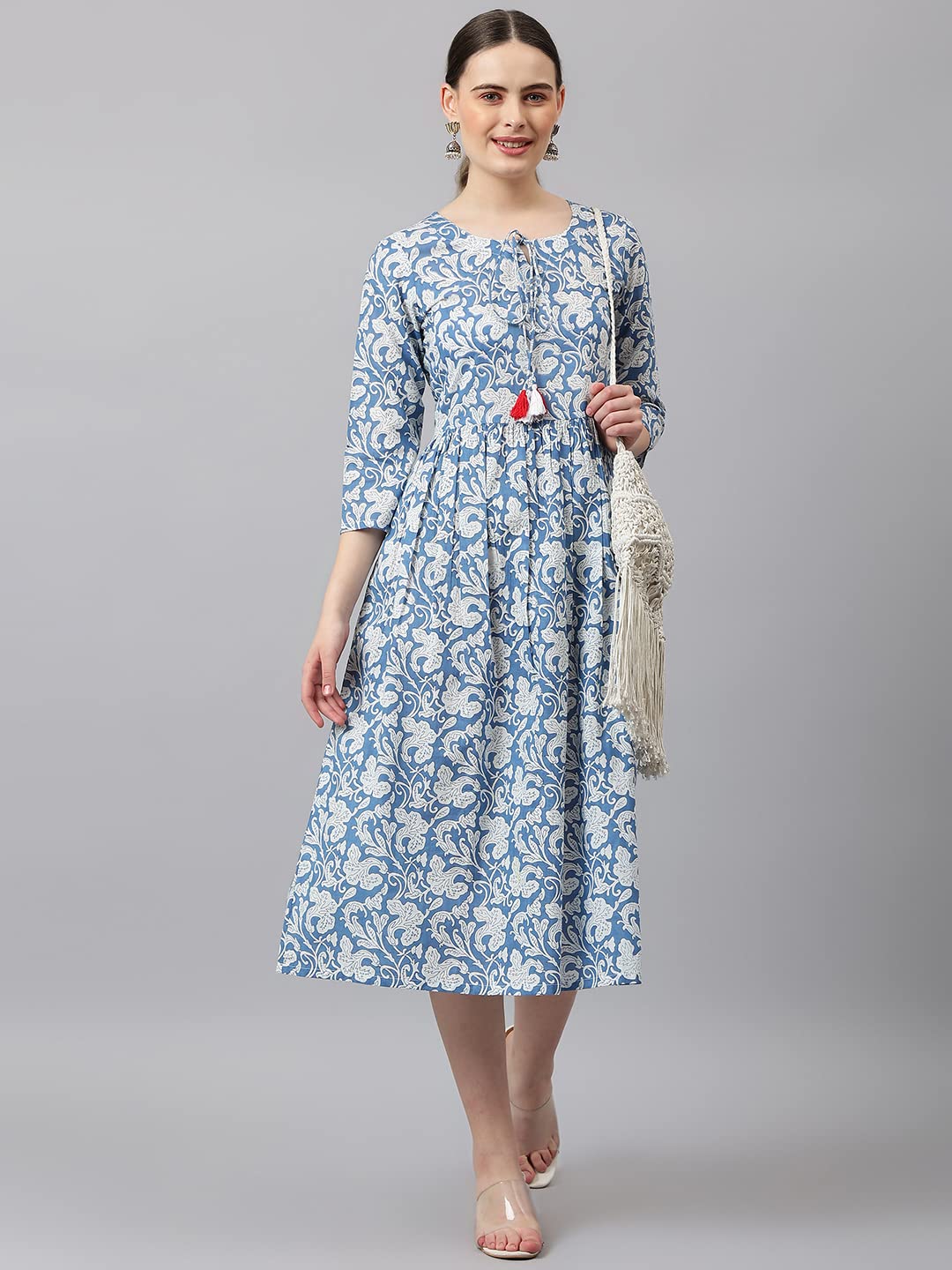 ANNI DESIGNER Women's Cotton Blend Anarkali Printed Kurta (Fulkali New Blue_M_Blue_Medium)