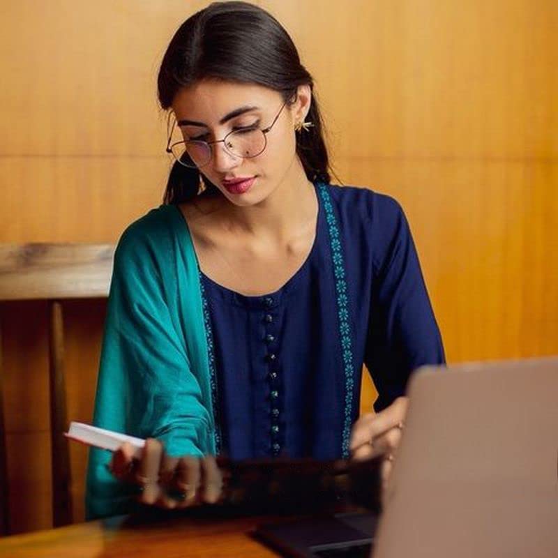 Anni Designer Women'S Cotton Blend Printed Straight Kurta, Palazzo & Dupatta (Homing New Blue_Xxl_Navy Blue_Xx-Large)
