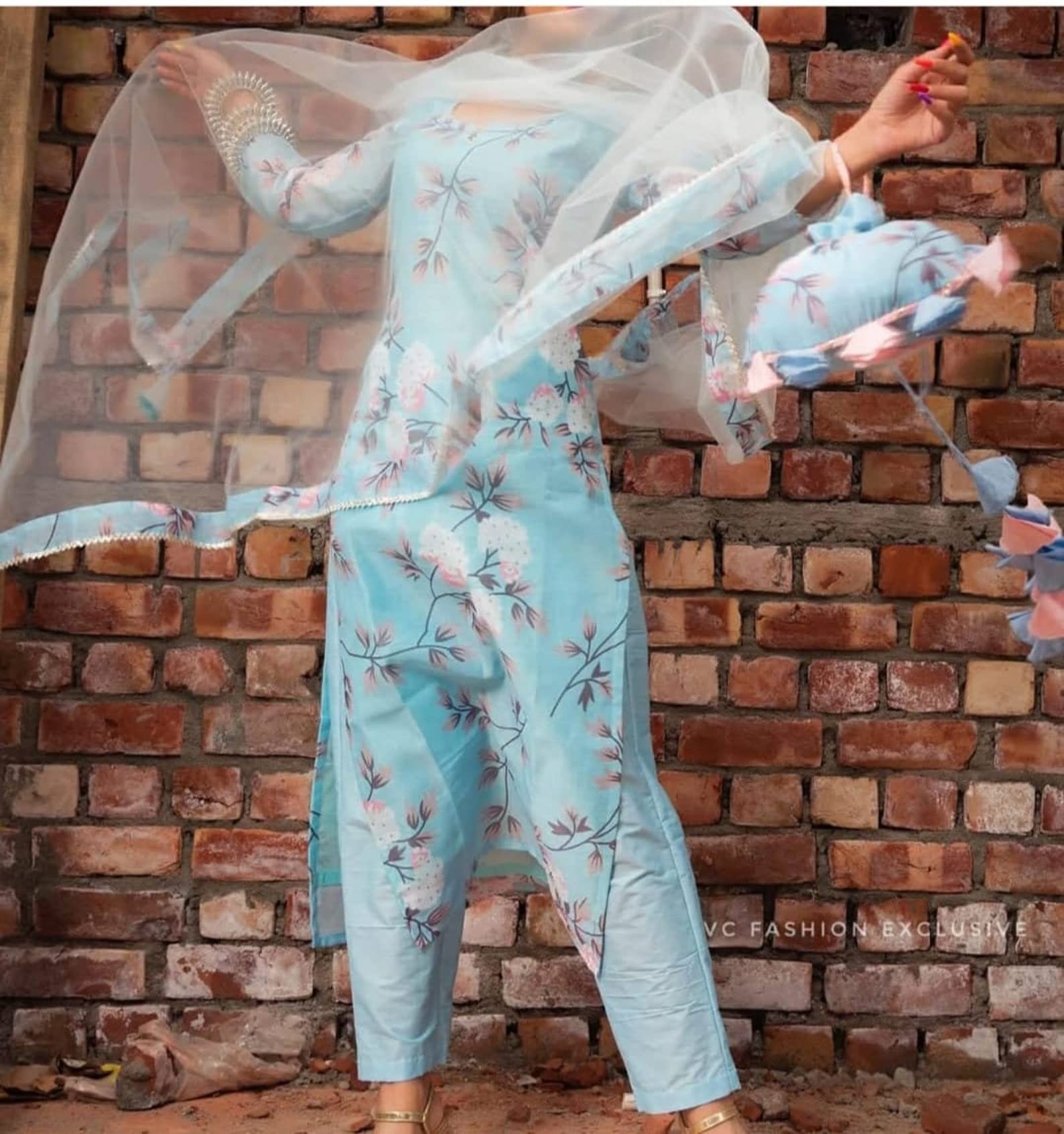 ANNI DESIGNER Women's Cotton Blend Printed Straight Kurta with Pant & Dupatta (Itta ST Blue_L_Blue_Large)