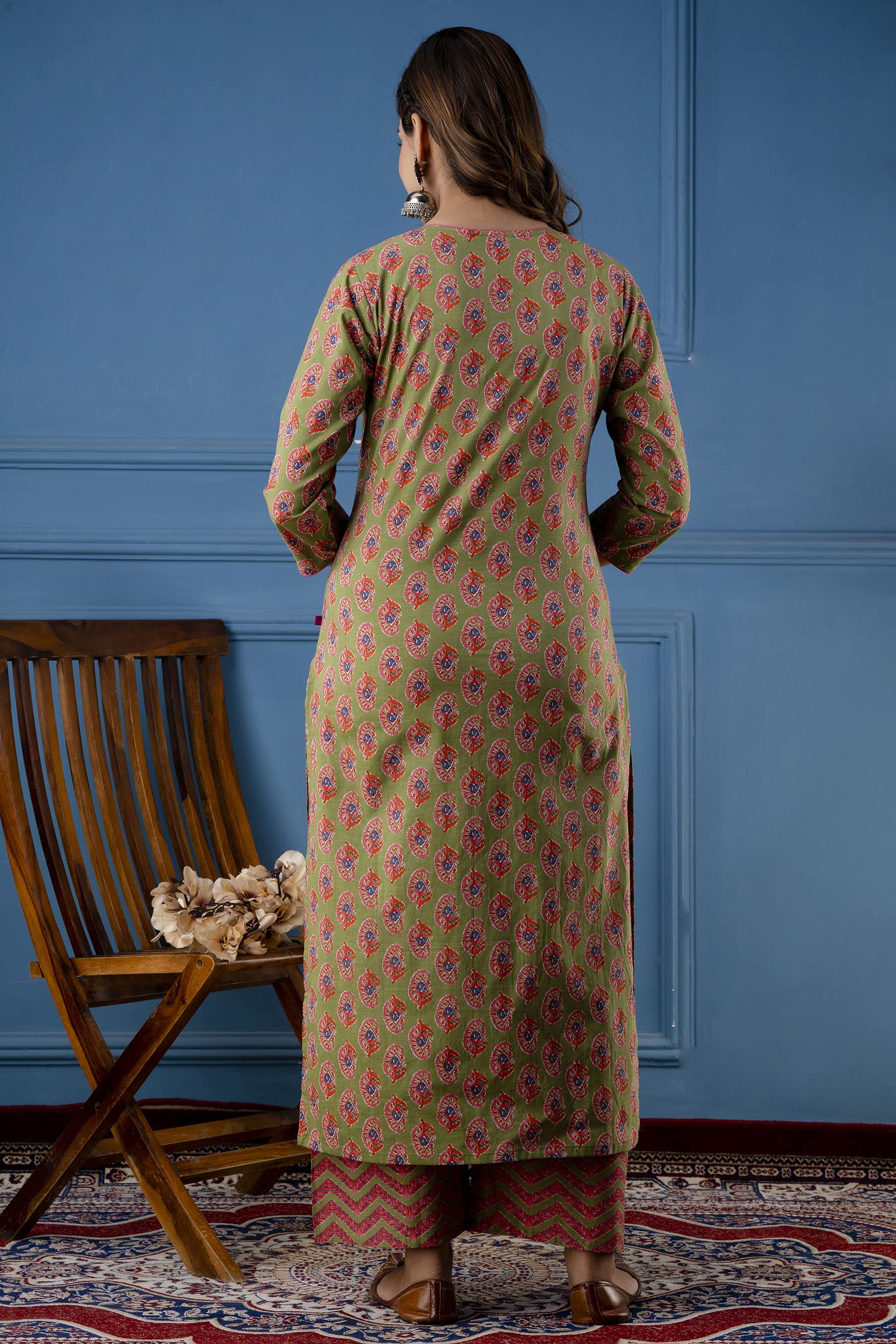 ANNI DESIGNER Women's Cotton Blend Traditional Straight Printed Kurta and Palazzo Set (Bhadra Green NW_XXL_Green_XX-Large)