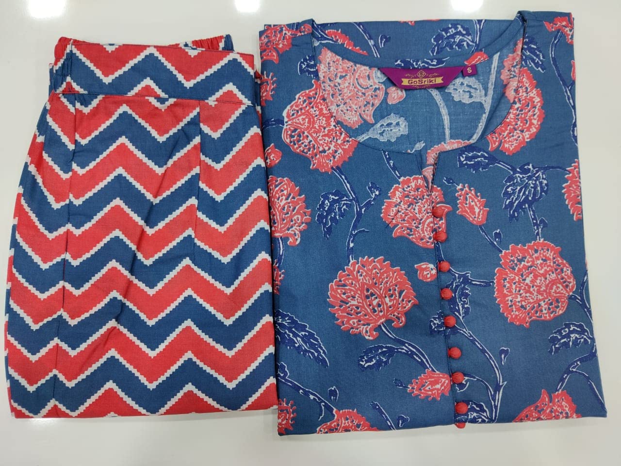 ANNI DESIGNER Women's Cotton Blend Printed Straight Kurta with Pant (kanzi Blue_S_Blue_Small)