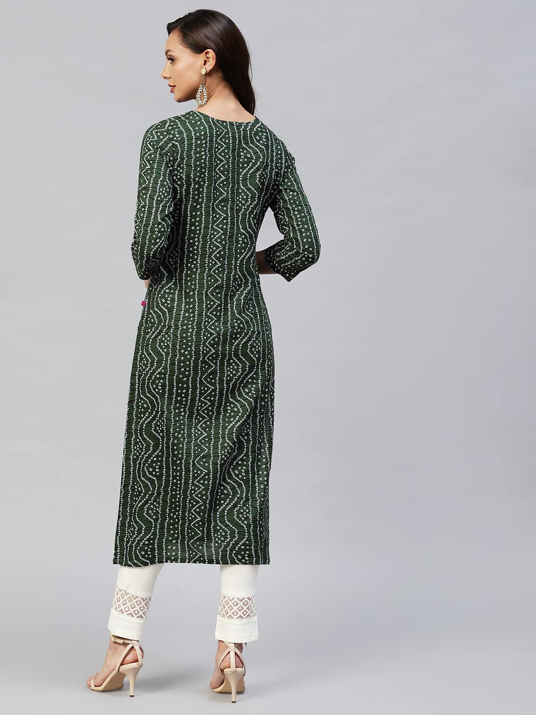 ANNI DESIGNER Women's Rayon Bandhni Printed Straight Kurta (DMD Bandhi Green_M_Green_Medium)