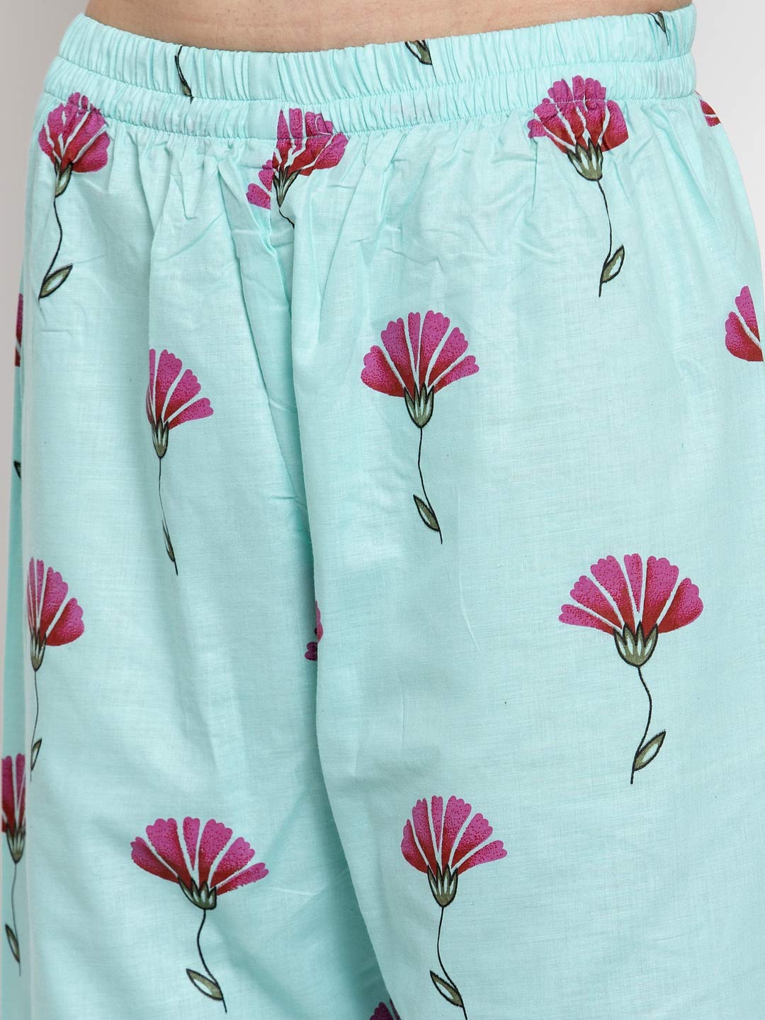 ANNI DESIGNER Women's Sea Green Cotton Anarkali Kurta with Plazzo (SARA SEA Green)