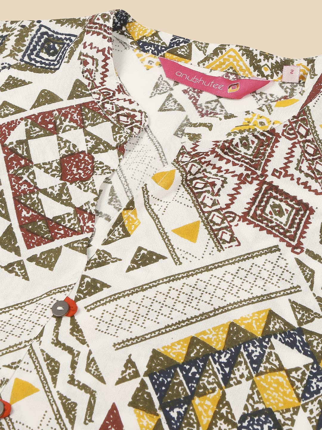 Anubhutee Women'S Rayon Off White Geometric Printed Straight Kurti