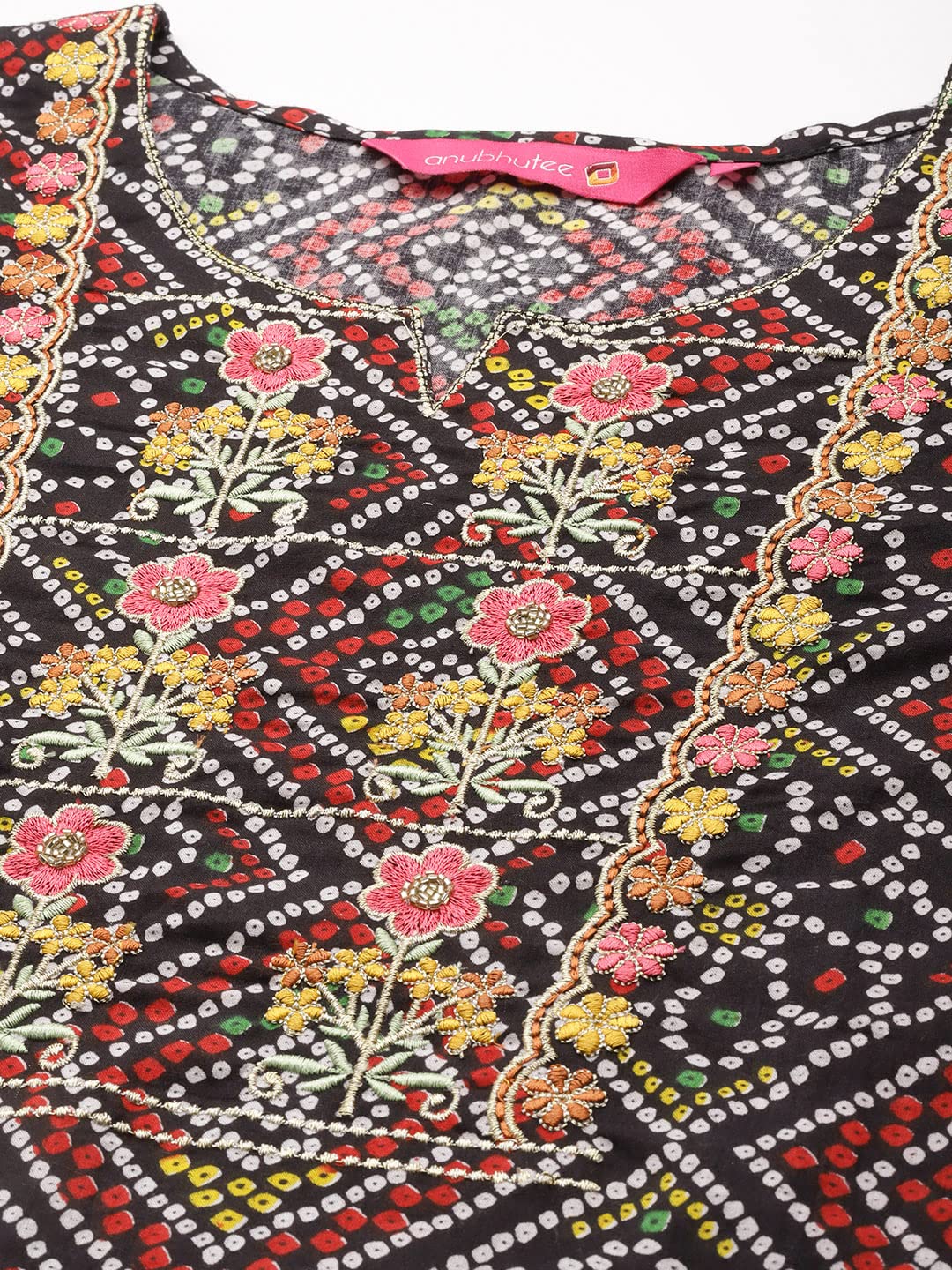 anubhutee Women's Cotton Bandhani Printed Straight Kurta Suit Set with Pants ABWKT2215_BK_L_Black