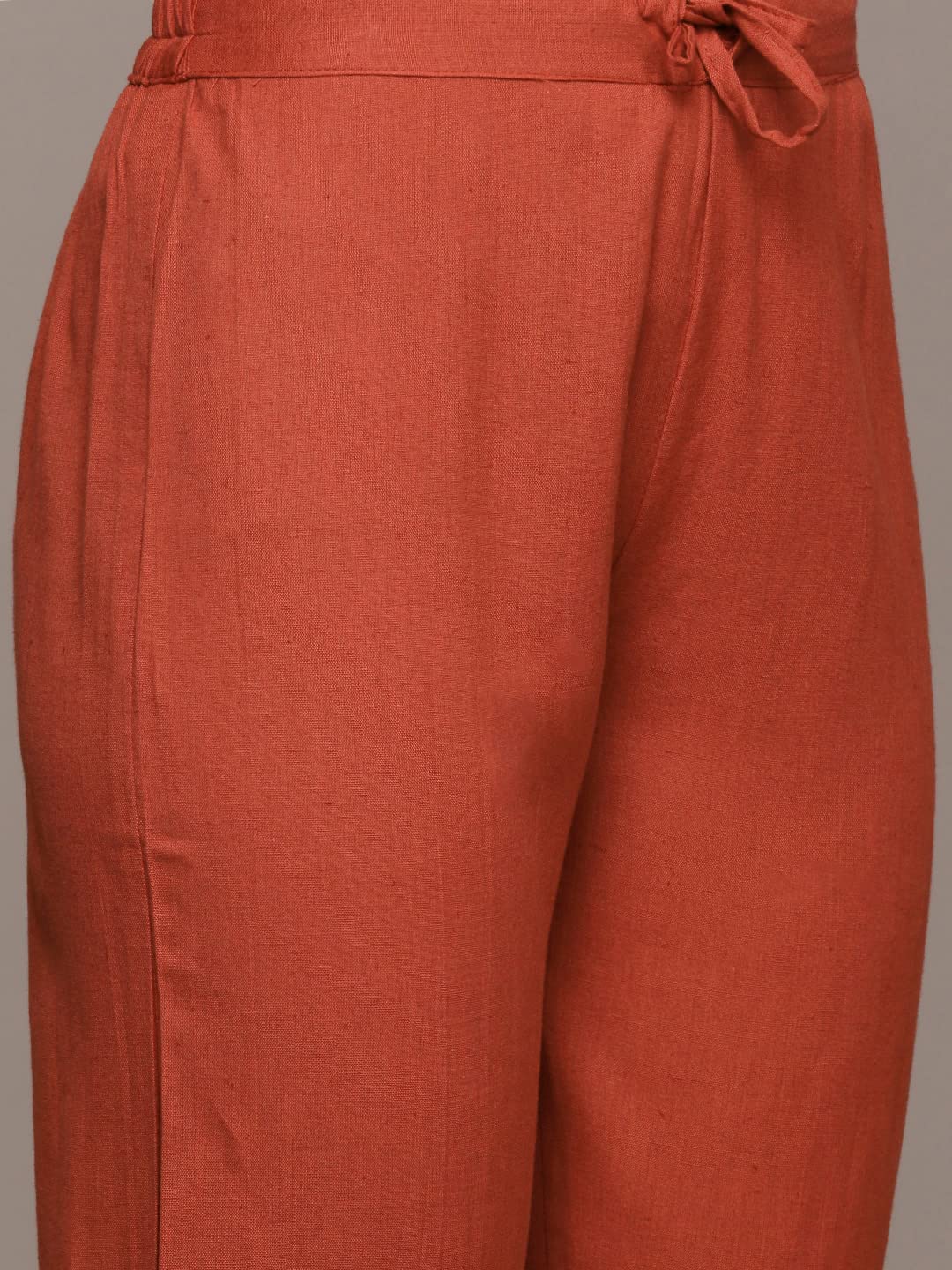 Anubhutee Women's Printed Straight Kurta suit set. Bottom-Trousers, Fabric - Cotton, Color-Maroon, Top Length- Calf. Has Round Neck, 3/4th Sleeves