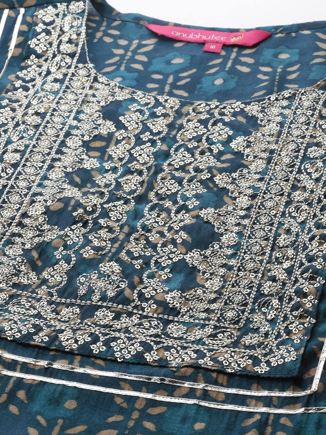 anubhutee Women's Muslin Teal Ethnic Motifs Embroidered Straight Kurta Suit Set With Pants And Dupatta