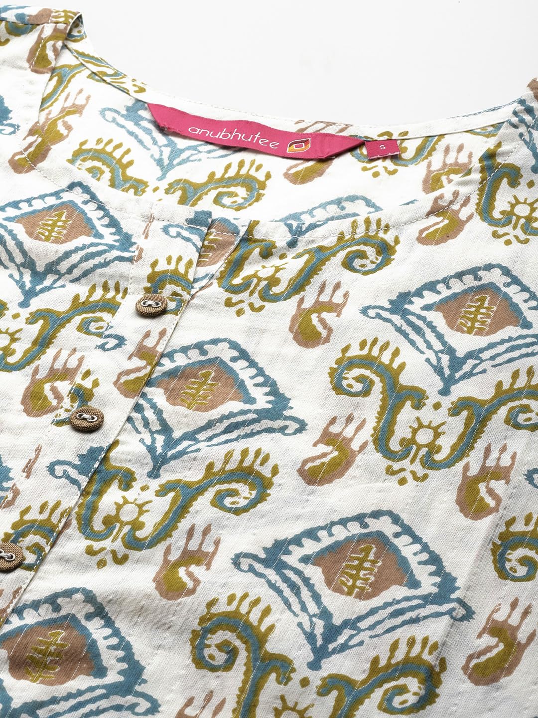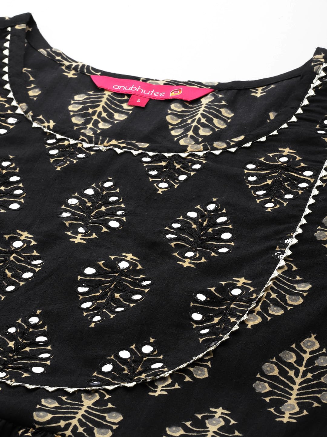 Anubhutee Women's Ethnic Motifs Printed Black A-Line Indo Western Dress- Color- Black, Fabric- Pure Cotton, Shape- Straight, Pattern- Ethnic Motifs, Has Round Neck, 3/4th Sleeves