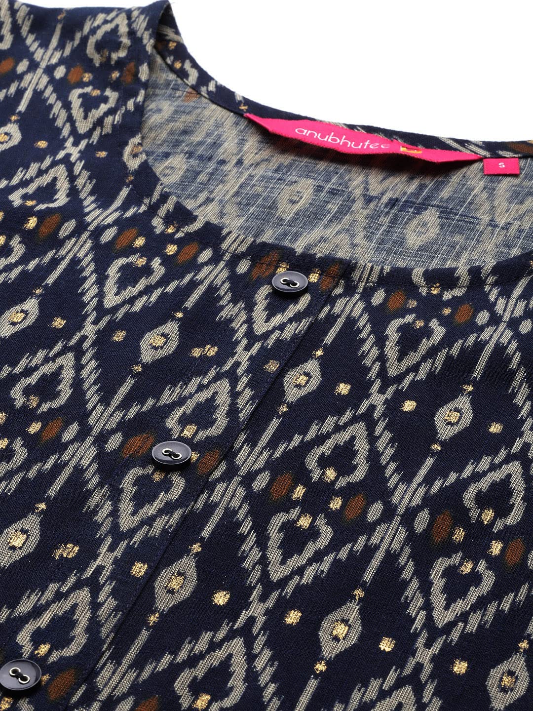 anubhutee Women's Rayon Navy Blue Ethnic Motifs Printed Straight Kurta