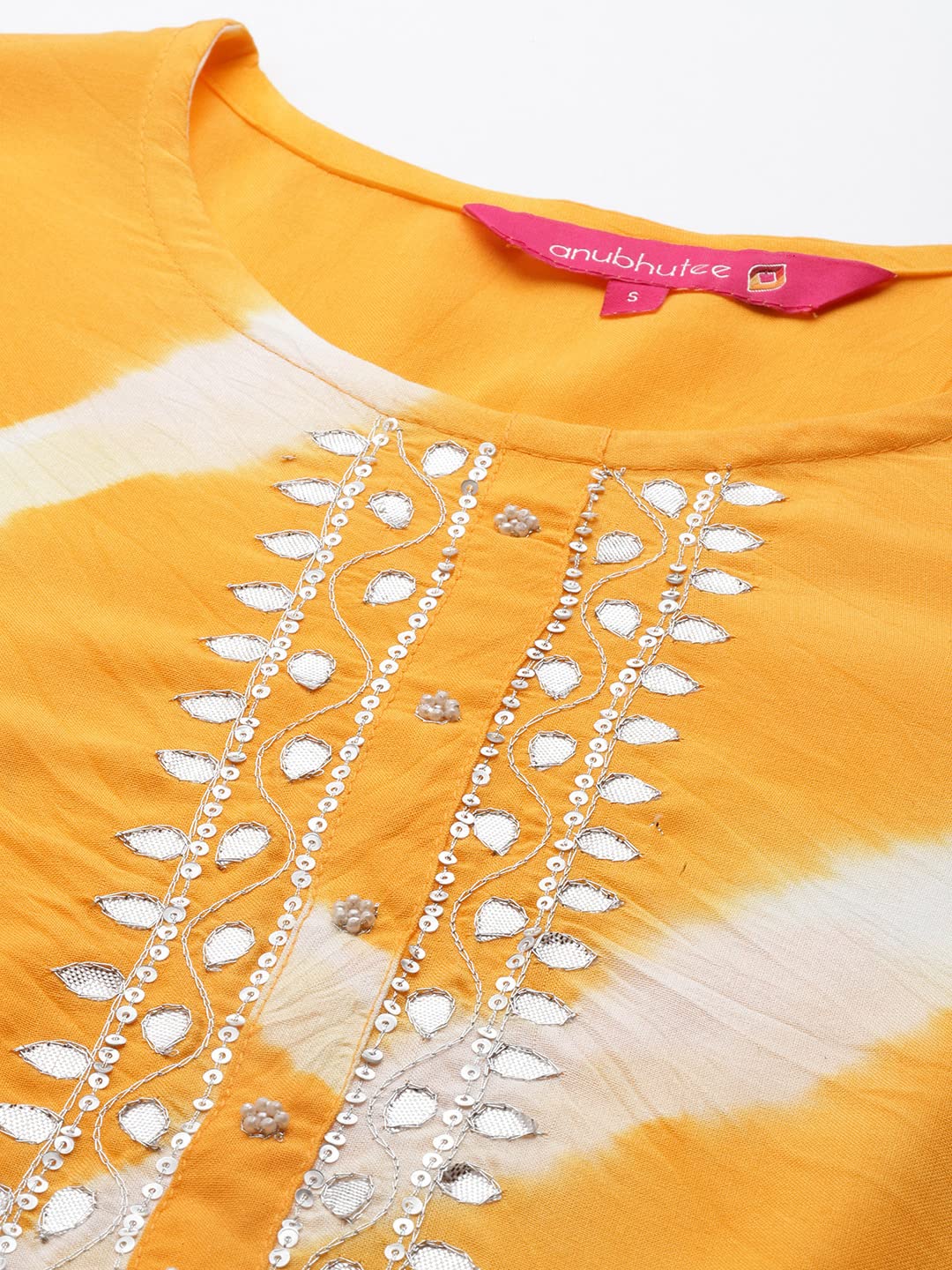 anubhutee Women's Rayon Yellow Abstract Printed straight Kurta Suit Set With Palazzos