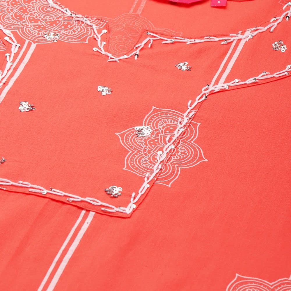 anubhutee Women's Red Ethnic Motifs Printed Sequinned Pure Cotton Kurta Suit Set with Pants and Dupatta