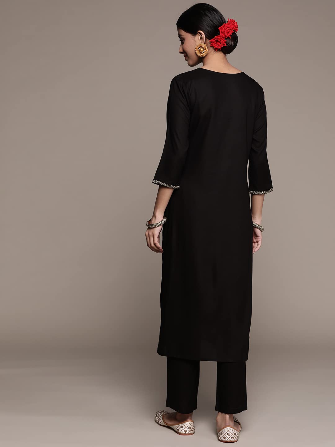 anubhutee Women's Viscose Rayon Black Ethnic Motifs Sequinned Straight Kurta Suit Set With Pants