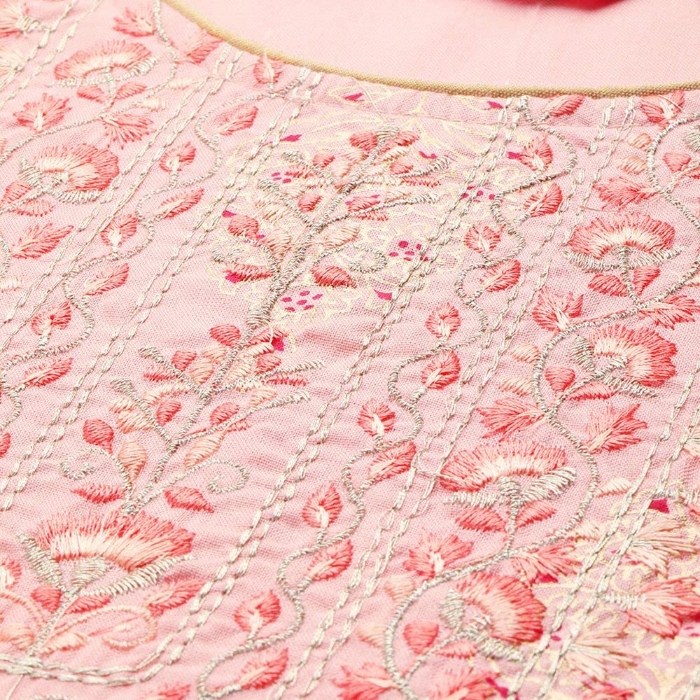 You'll love the elegant design and fit of this stunning kurta from Anubhutee. Dress up for your next family event by pairing this pink piece with your best Kolhapuris and simple jewellery.Pink and Golden printed straight kurta with embroidered detail, has a round neck, three-quarter sleeves, straight hem, and side slits