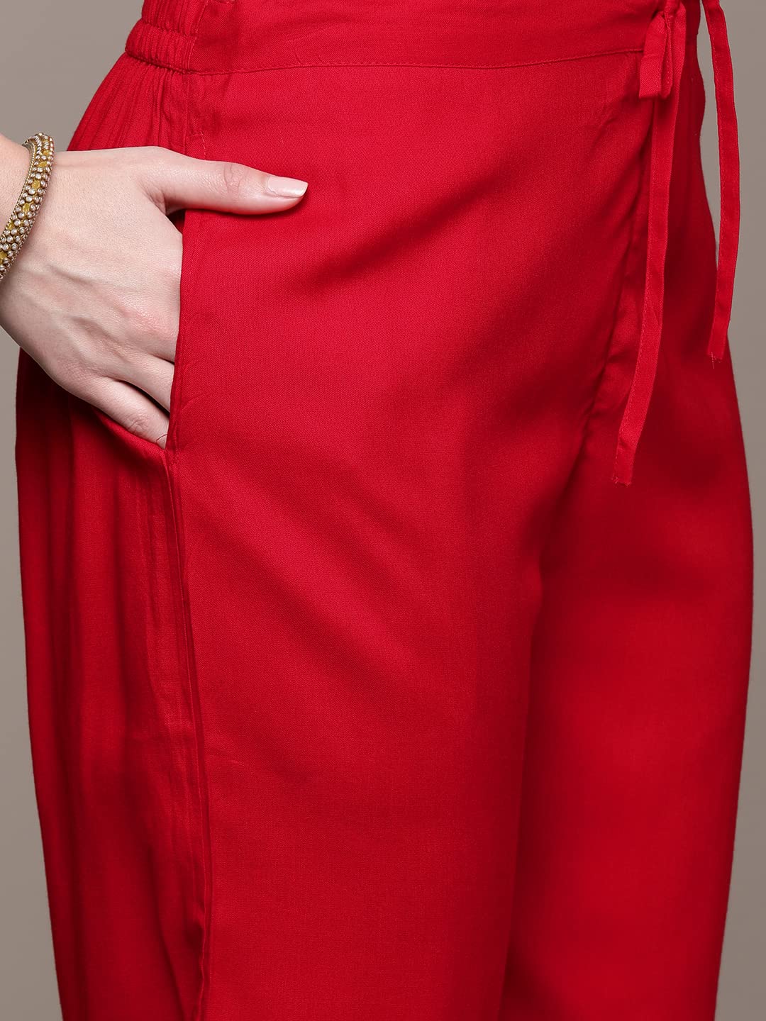 anubhutee Women's Viscose Rayon Yoke Zari Embroidered Kurta with Palazzo Set