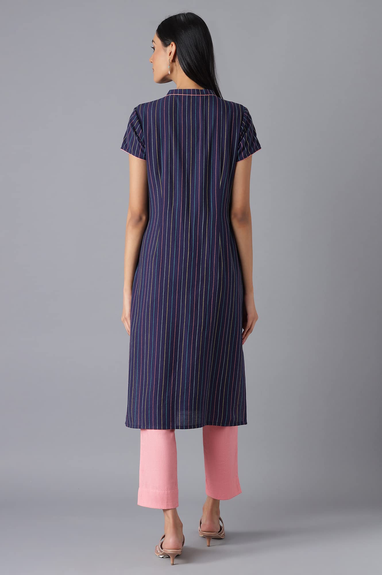 Aurelia Mandarin Cotton Womens Calf Length Kurta (S22FEA12881-P)