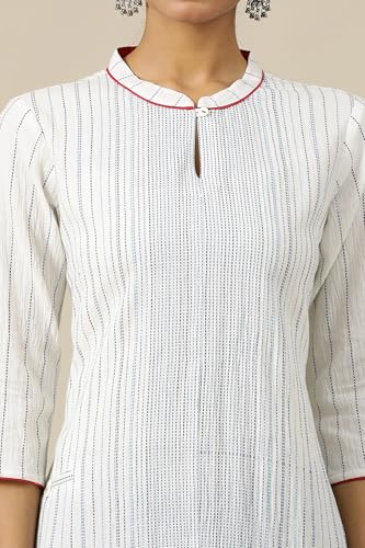 Aurelia Womens Geometric Printed Straight Pure Cotton Kurta | Lightweight Mandarin Collar Kurta For Women Cotton | Yarn Dyed Kurta For Women | Soft & Breathable Regular Fit Kurta For Women White