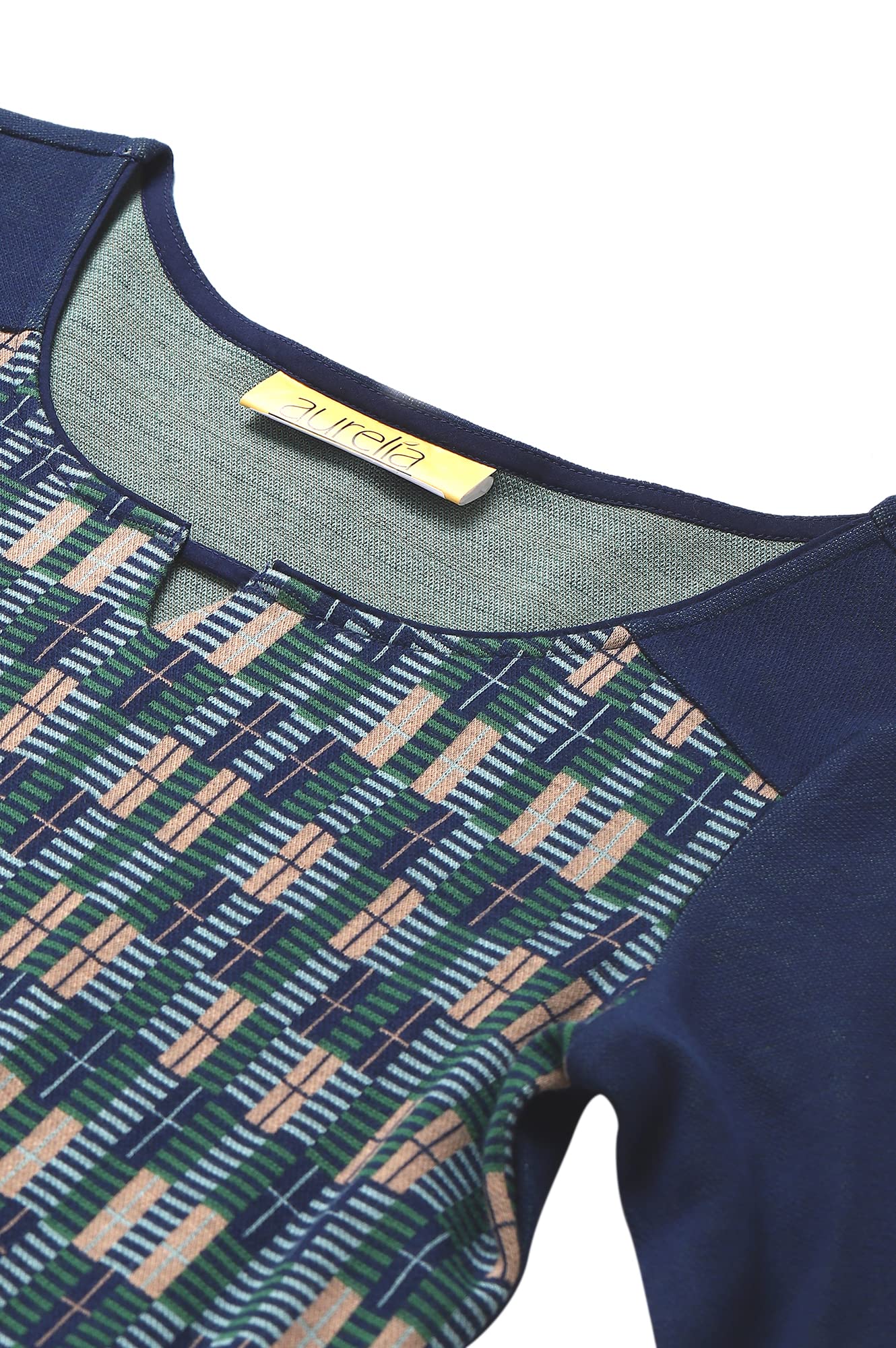 Aurelia Women Sailor Blue Cotton Blend Geometric Yarn Dyed Straight Kurta