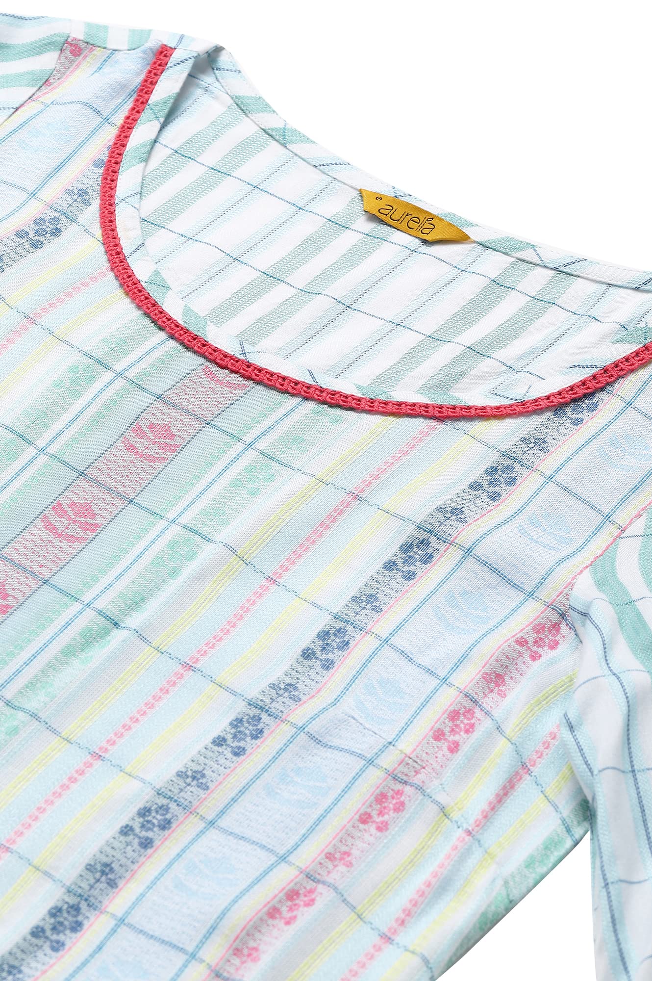 Aurelia Women Viscose Rayon Dobby Floral Yarn Dyed Straight Kurta