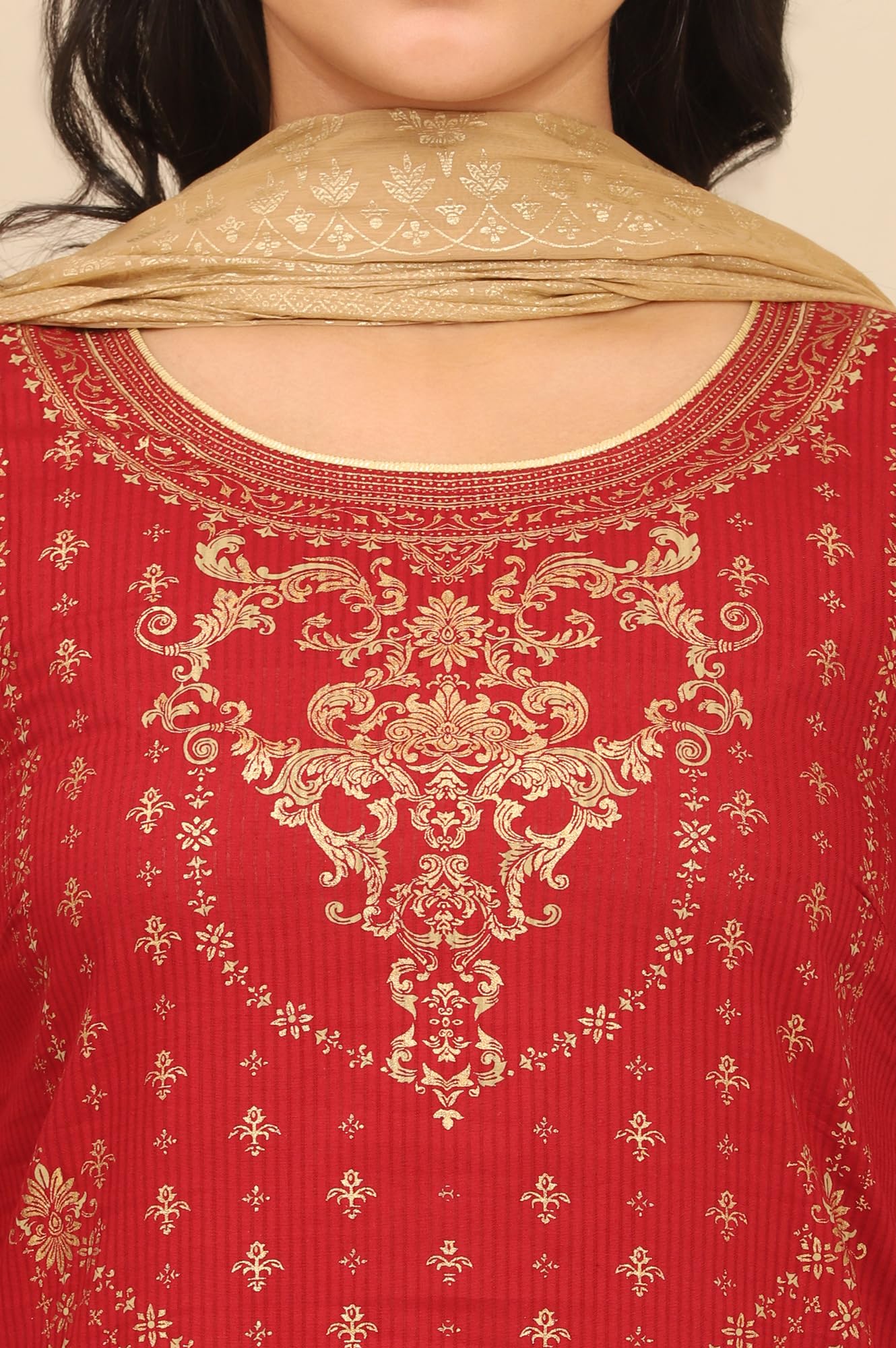 Aurelia Women's Blue Foil Printed Yoke Pure Cotton Straight Kurta, Skirt and Dupatta Set