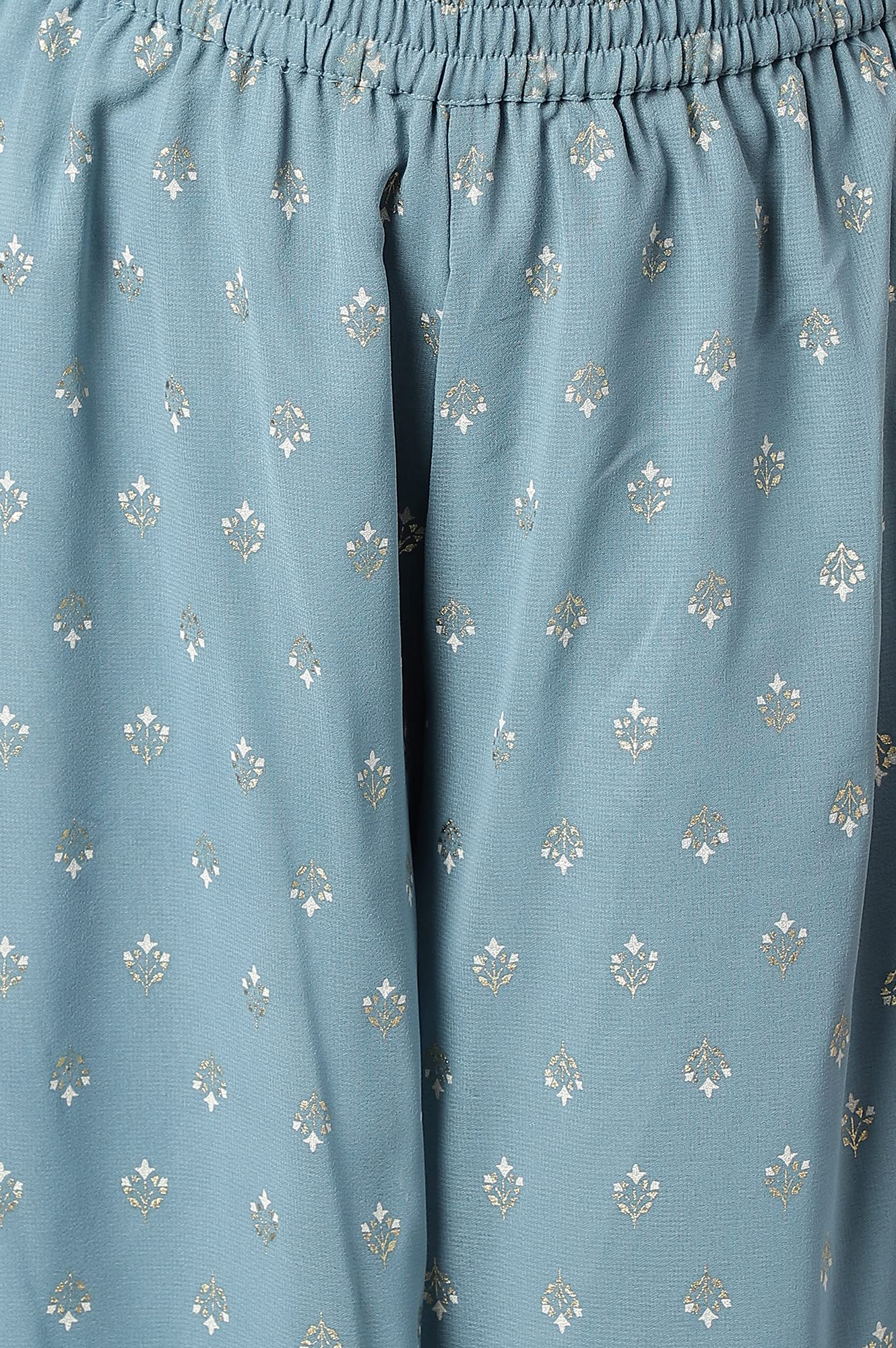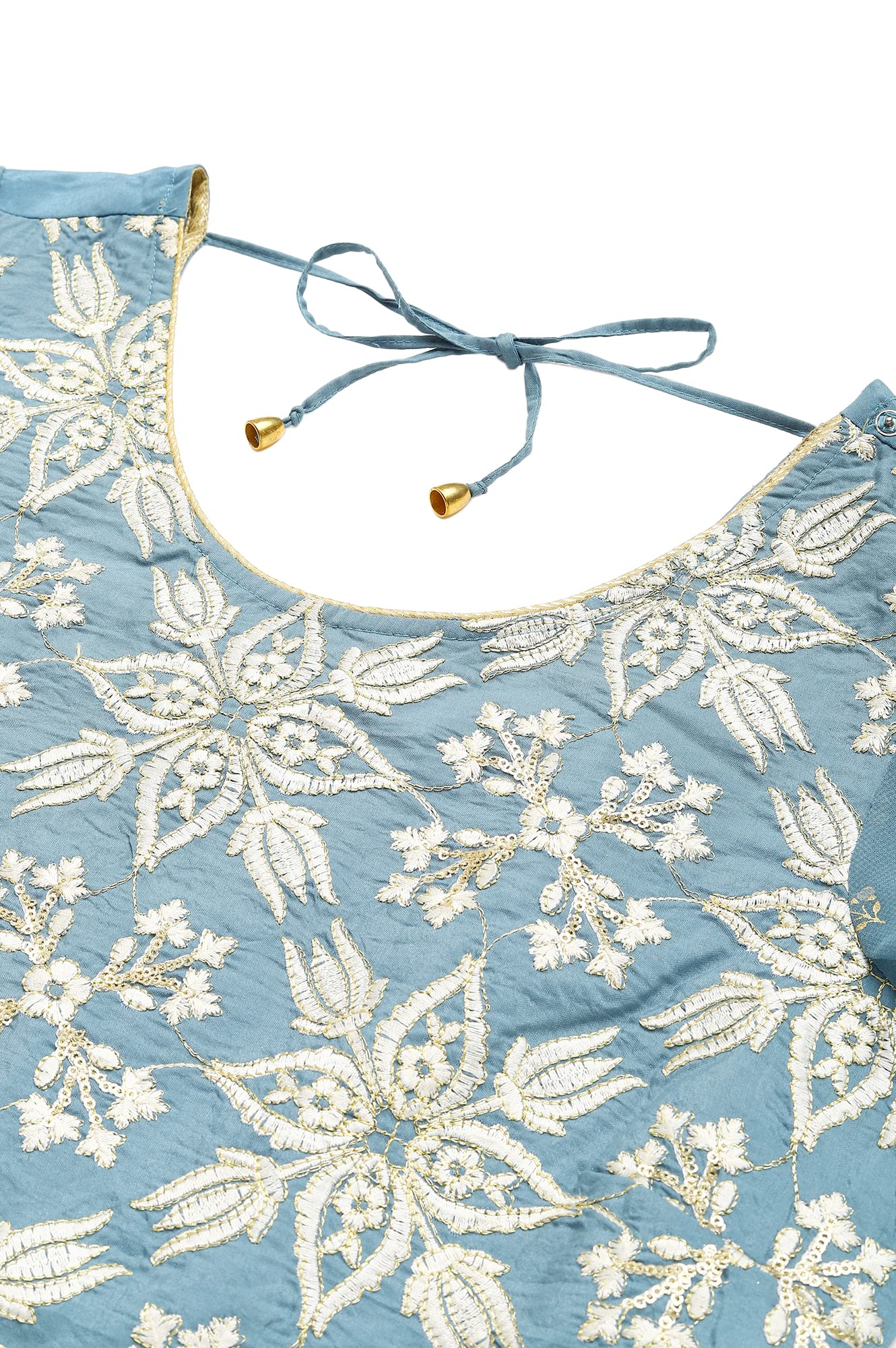Make heads turn at any occasion in this fashionable blue mist 3d embroidered crop top and Semi Flare Palazzos. It has a pre stitched saree drape which looks very gorgeous when worn and is super comfortable to wear. It is a must have this season and is sure to earn you compliments.