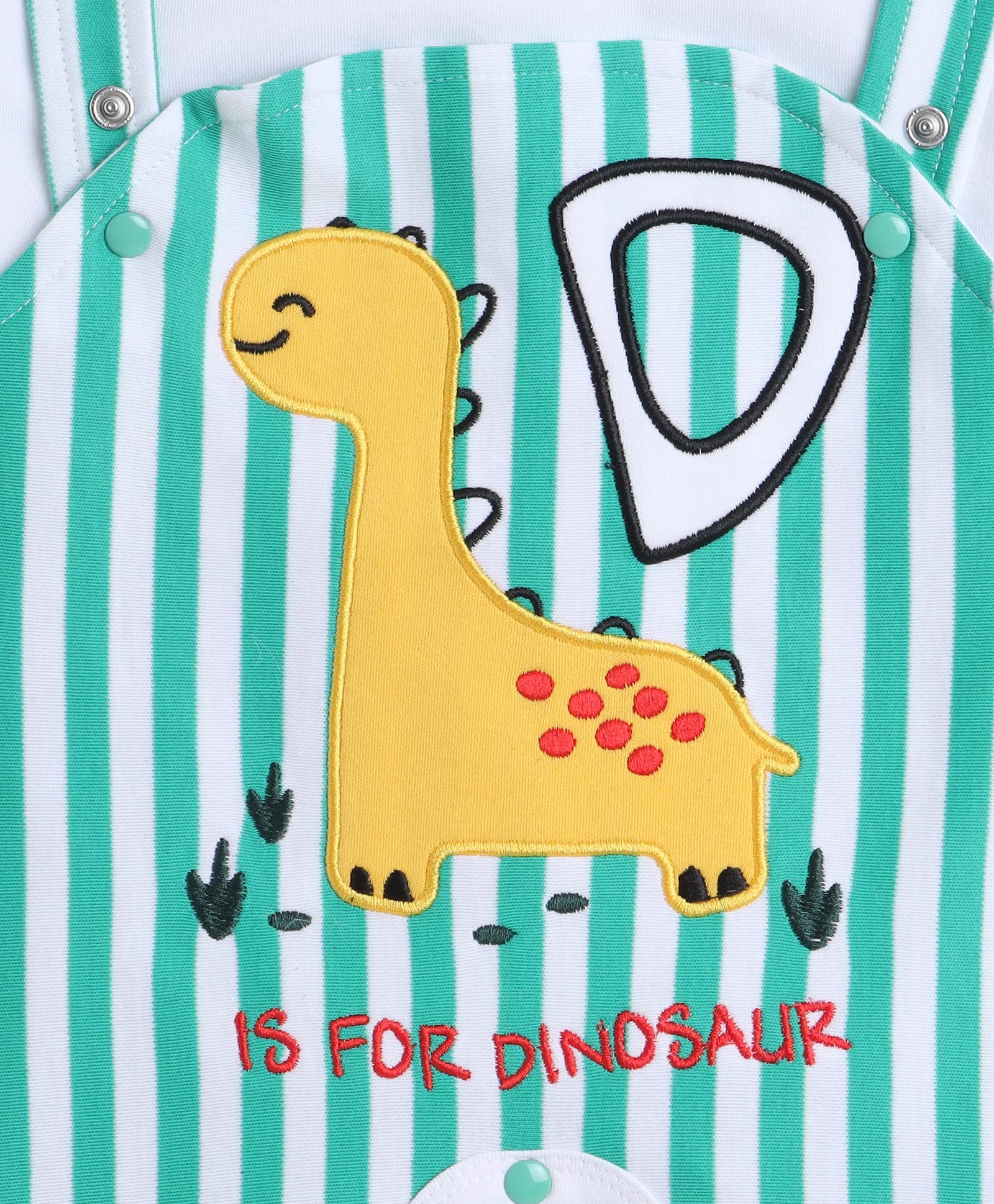 Bumzee Green & White Girls Half Sleeves Thigh Length Romper Age - 0-3 Months (Peb8066B-Grn.Wht)
