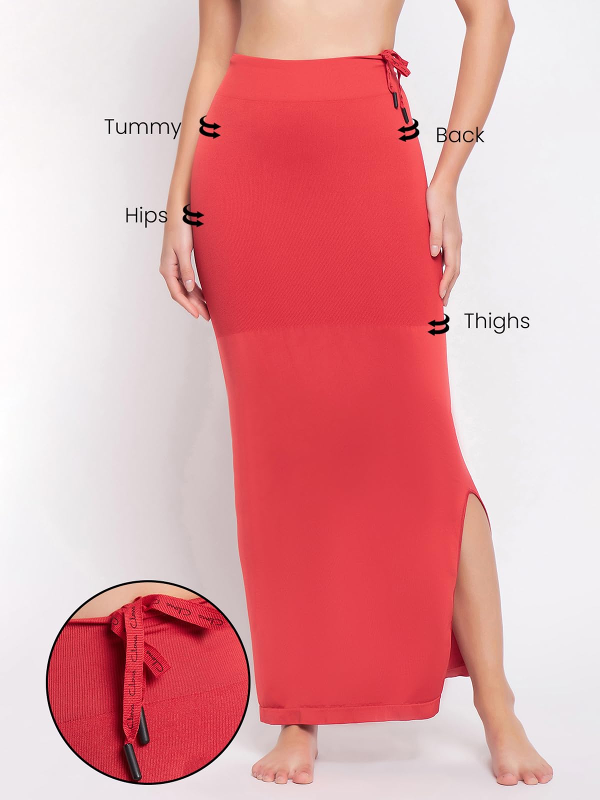 DescriptionProduct Type: Saree Shape Wear; Fabric Type: Nylon, Spandex; Pattern Type: Solid; Length: Ankle Length; Target Area: Hips||Tummy||Full Legs||Thigs; Please Wear It For 15 Minutes And Give It Time To Take The Shape Of Your Curves. It'S The Right Fit If You Are Able To Breathe.; Knitted Saree Shape Wear.