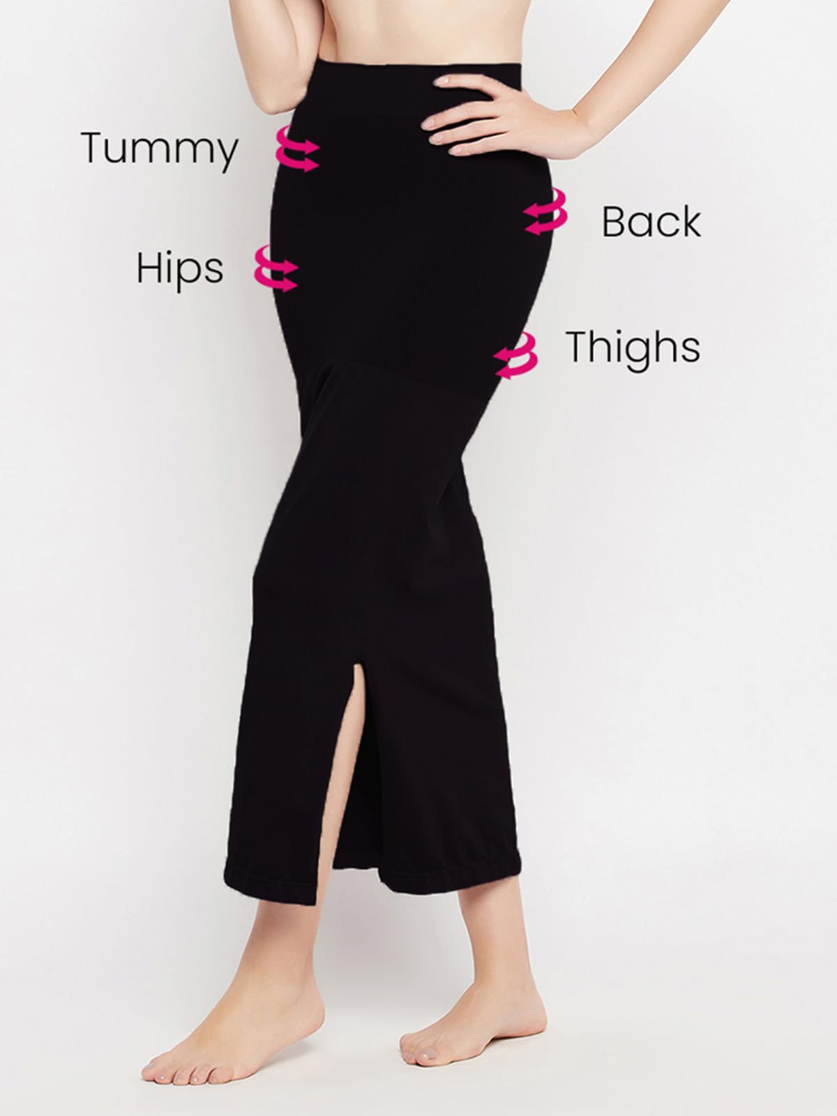 Clovia Women'S Petticoat Style Saree Shapewear With Side Slit (Sw0023P13_Jet Black_L)