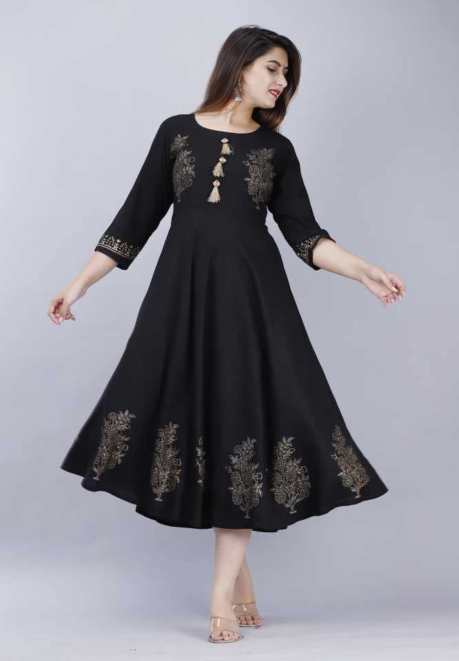 DIGITAL SHOPEE Rayon Printed Regular Wear Long Kurti | Kurta for Women & Girls - Multicolor