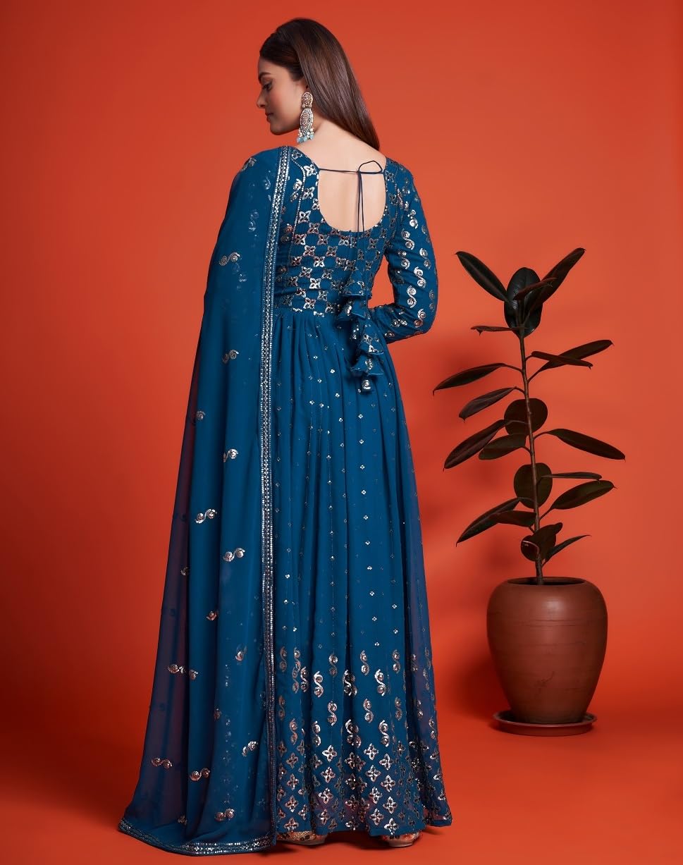 The Gerogette Embroidery Work gives a very unique disposition to this Turquoise Salwar Suit Set.The intricate yet congenial design gives a very elegant appearance to this Turquoise salwar suit,Turquoise salwar suit for women,dress materials for women latest design,Anarakli set for women stylish latest,salwar suit for women party wear.This graceful traditional wear would be your top pick for parties and other special occasions wedding Function,Party wear. It would adorn your persona with a refined flair.
