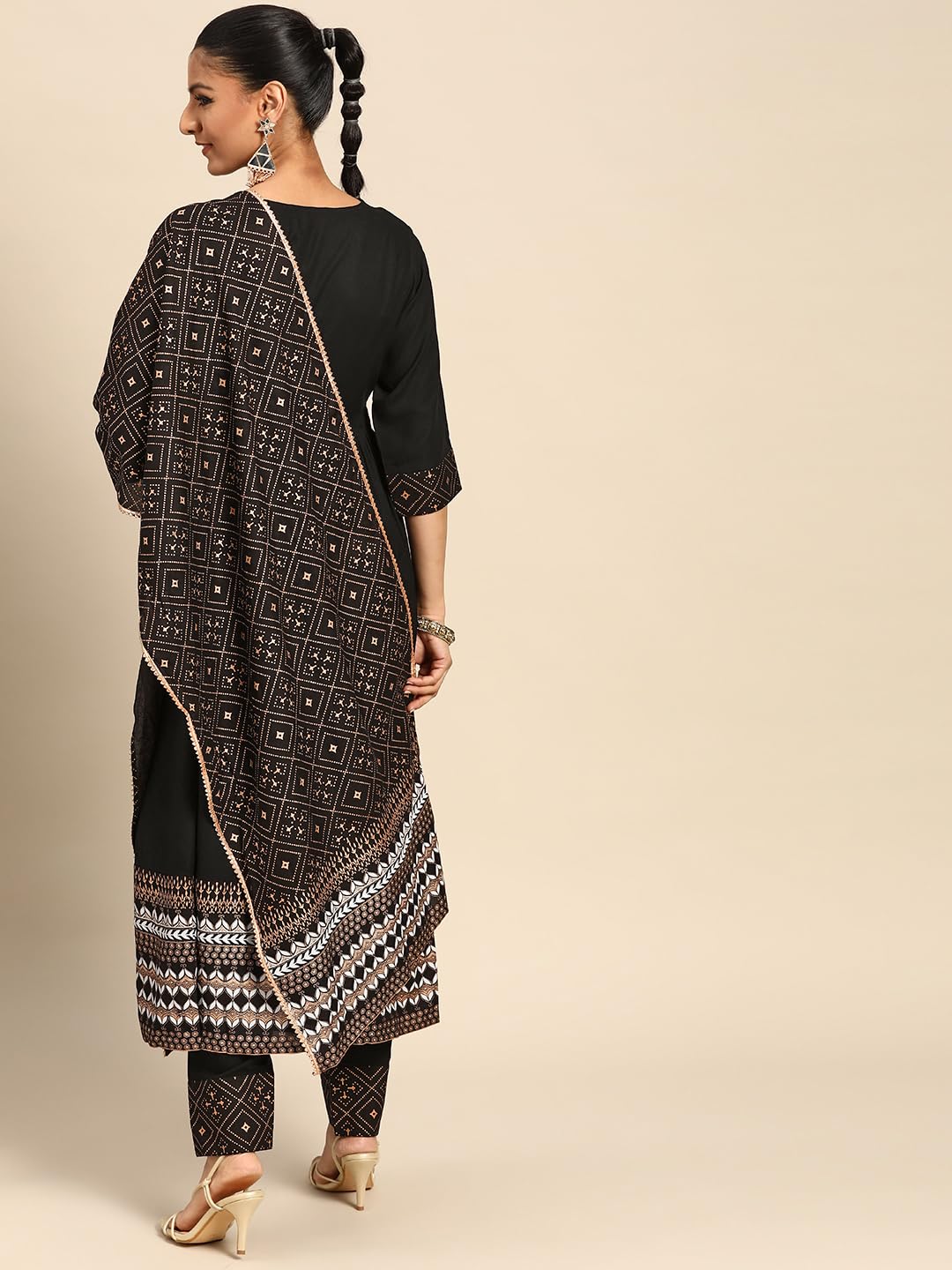 DescriptionBlack Viscose Rayon Solid Gotta Patti Kurta & Black Solid Trouser With Black Cotton Printed Dupatta