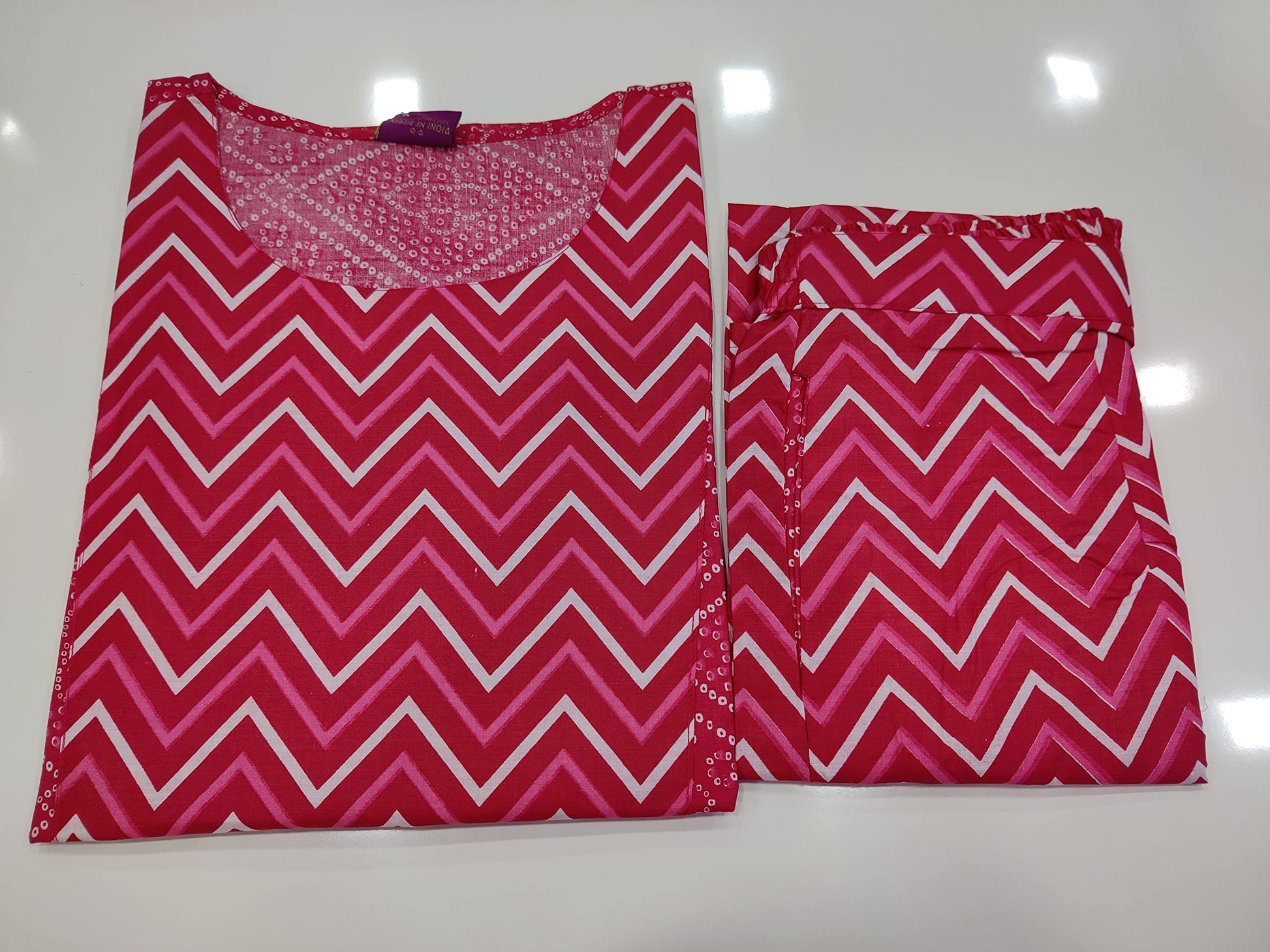 GoSriKi Women's Cotton Blend Printed Straight Kurta with Palazzo (Pimpli 01-GO)