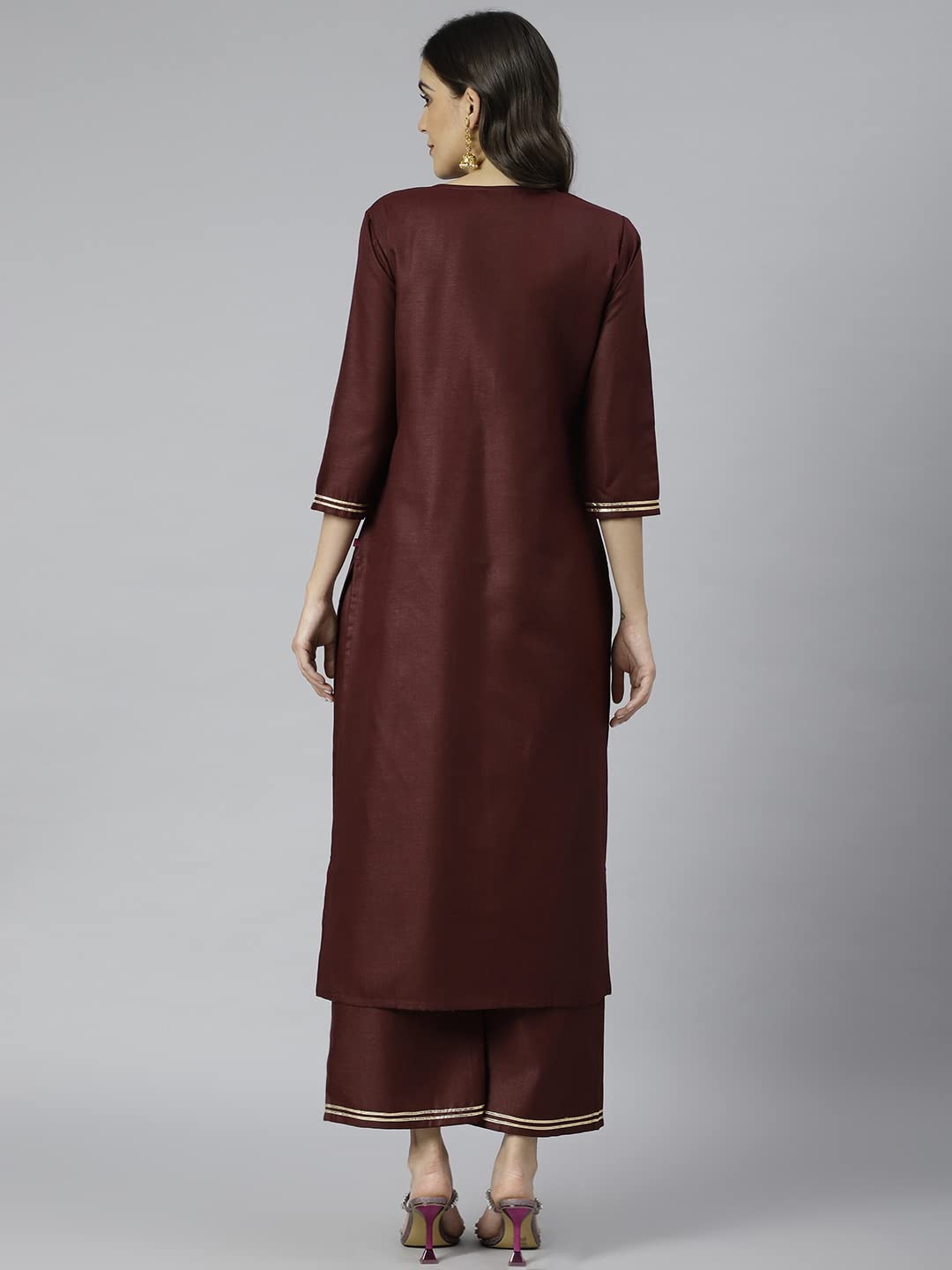 GoSriKi Women's Cotton Blend Printed Straight Kurta with Palazzo (Ridhma Maroon_L-GO_Maroon_Large)