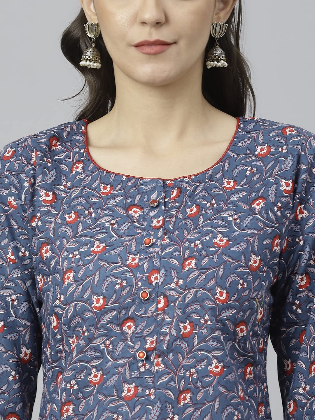 GoSriKi Women's Cotton Blend Straight Printed Kurta with Palazzo (Qwerty Blue_S-GO_Blue_Small)