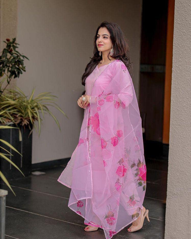 GoSriKi Women's Cotton Blend Straight Printed Kurta with Pant & Dupatta(Sikari-GO)