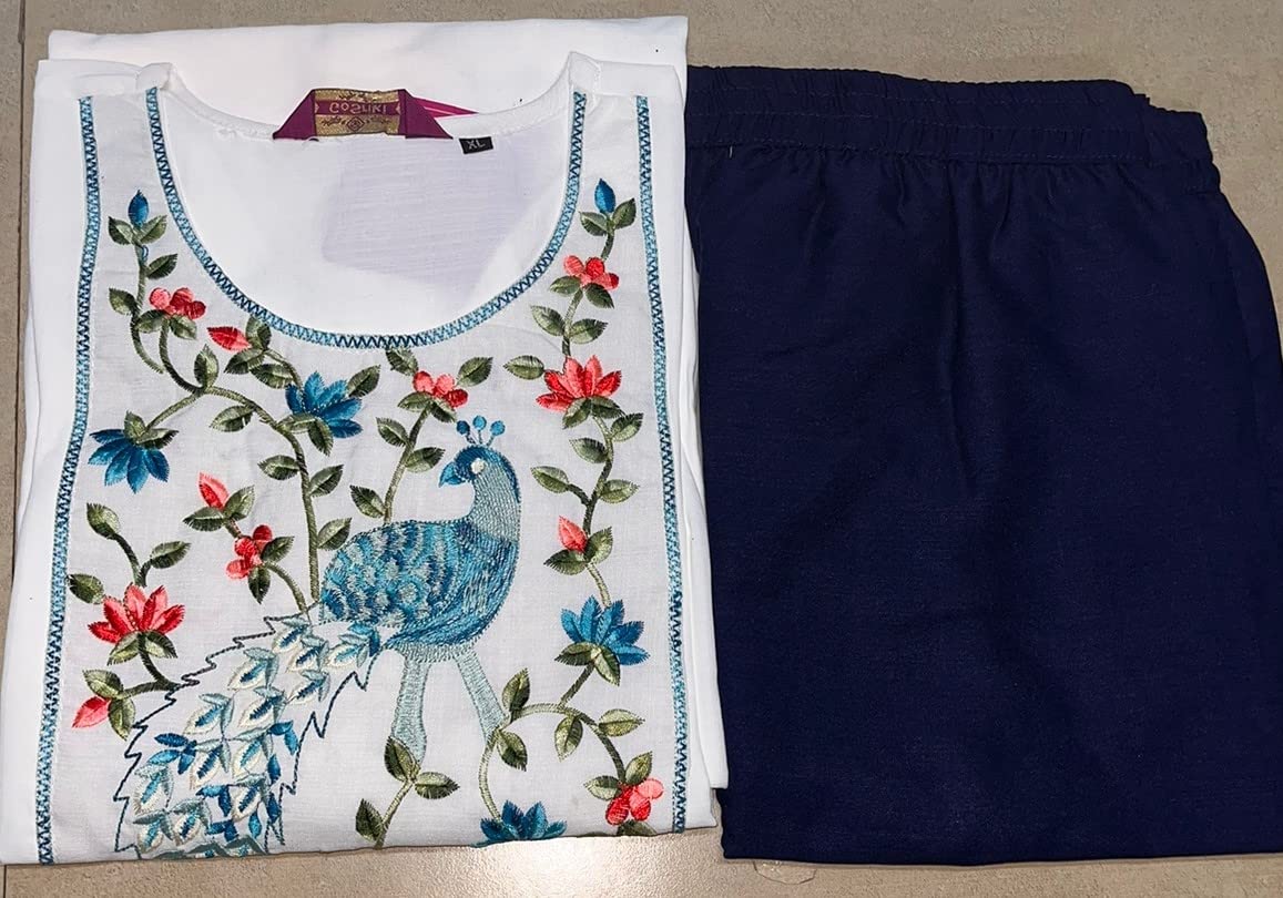 GoSriKi Women's Cotton Blend Printed Straight Kurta with Pant (KIDAYA-YELLOW-Nw01-GS_3XL_Yellow_XXX-Large)