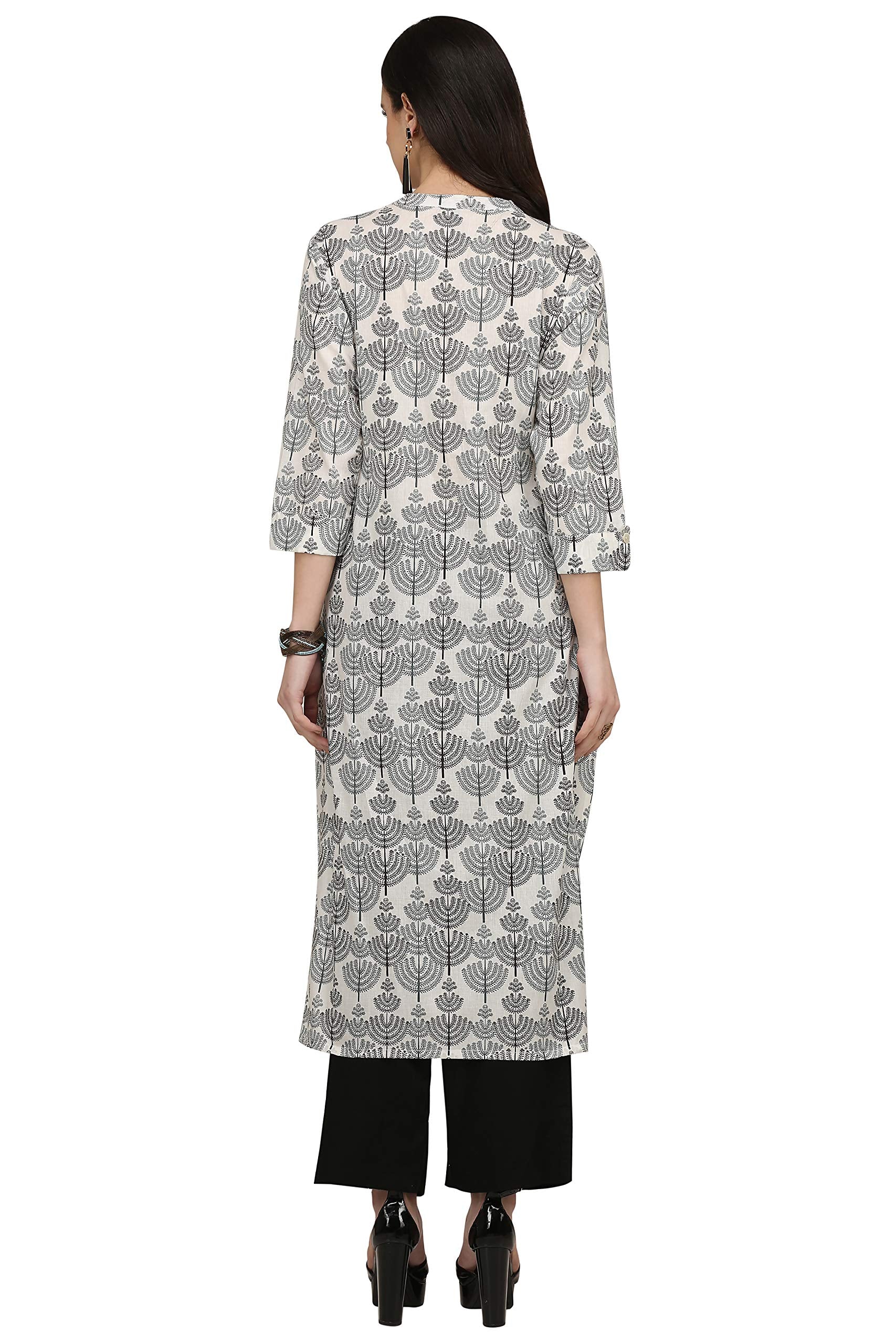Gosriki Black & White color cotton floral printed calf length kurti. Kurti color: Black & White, kurti fabric: Cotton, work: floral printed.
