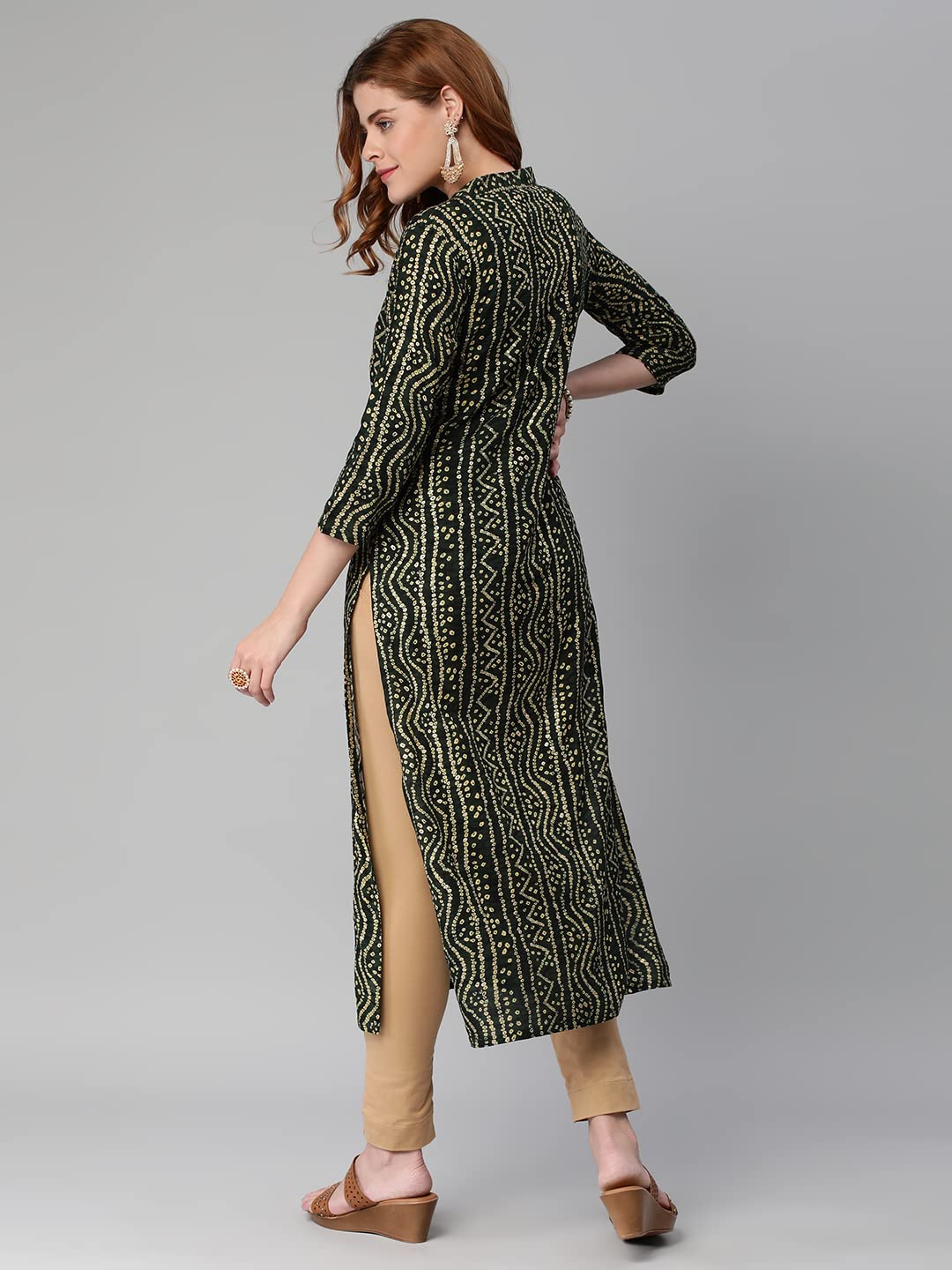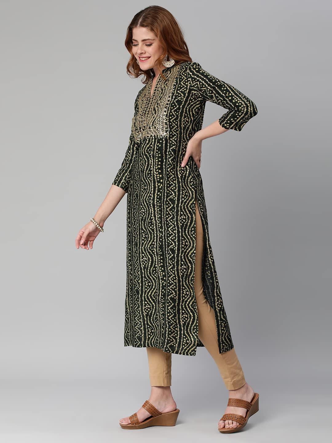 GoSriKi Women's Pure Cotton Rayon Bandhani Printed with Embroidered Straight Kurta (Rugari-Yellow-Jan42-GS_XL_Yellow_X-Large)