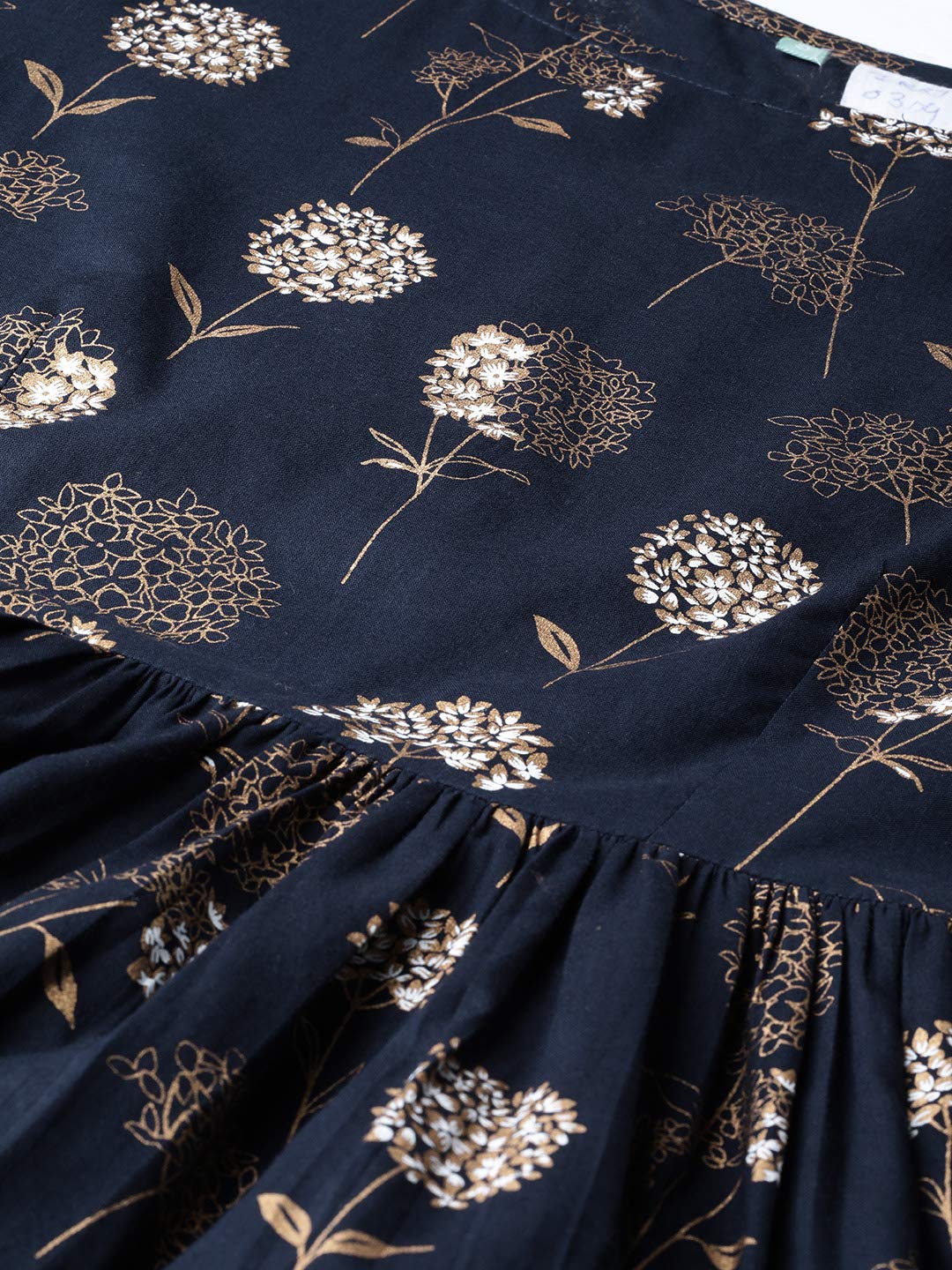 idaLia Women's Gold Print Peplum Cotton Kurta Set
