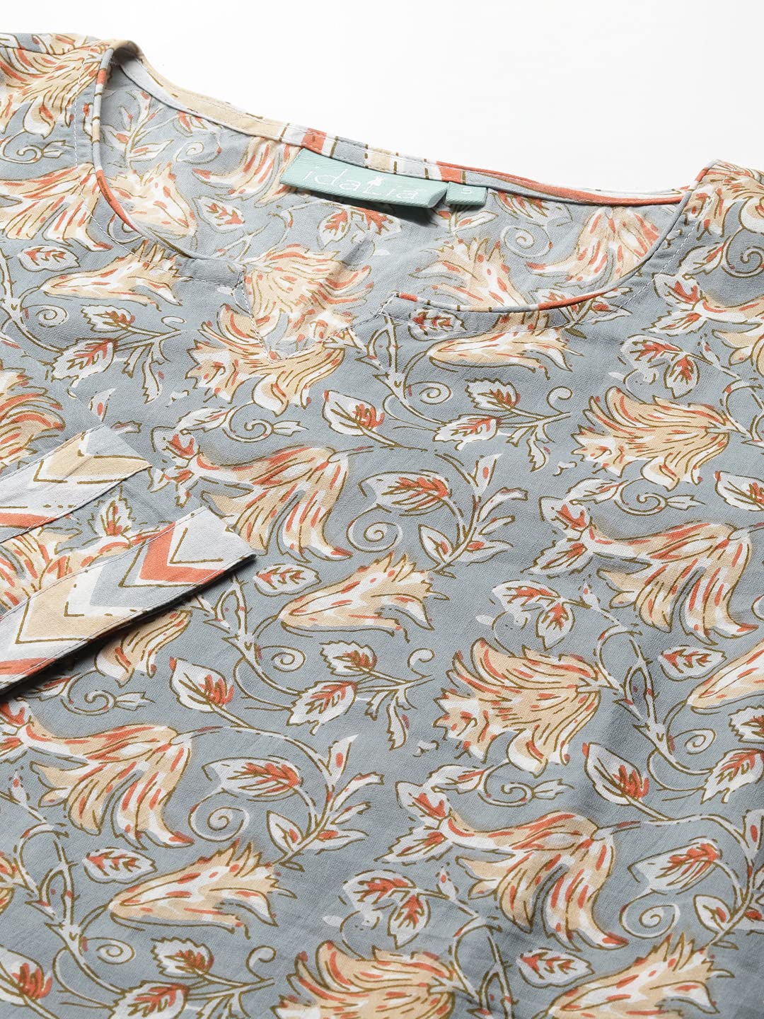 idaLia Women's Multicolor Printed Cotton Kurta Set with Palazzo Pant and Dupatta